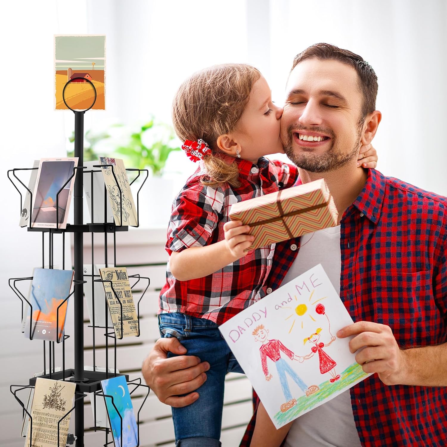 - Sturdy Material: our spinning rack stand is made of quality metal material, smooth and seamless, and not easy to break; With a 360 degree rotating base, allows you to easily access your greeting card at any time, without breaking the integrity of metal greeting card display