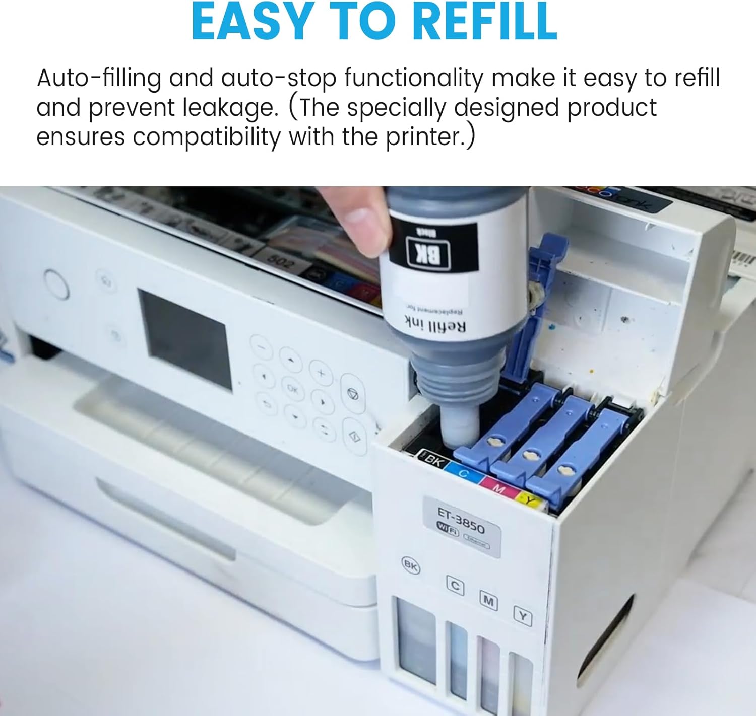- ✅To make your printer run well with the compatible ink refill bottles, you should replenish the ink in time when “Check your ink levels regularly” pops