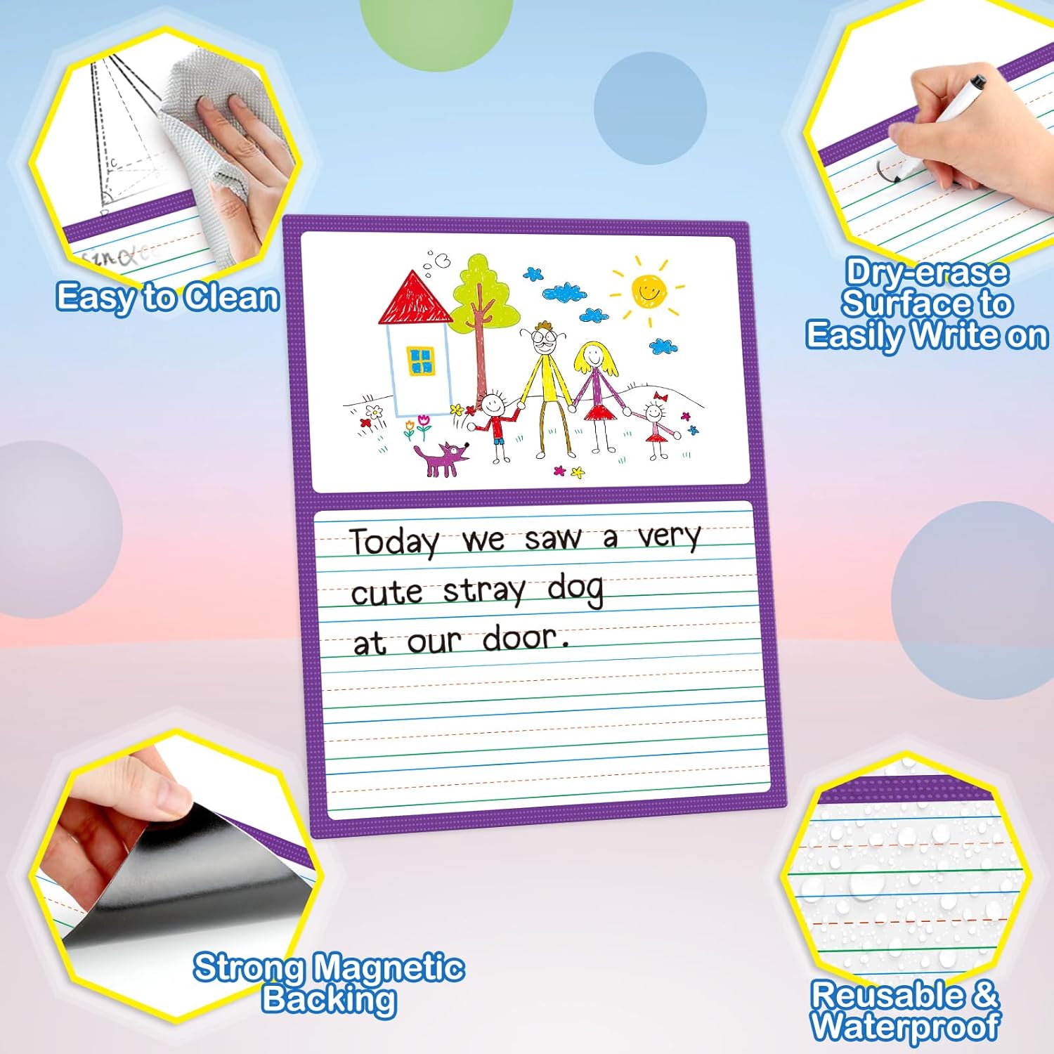 - 【Unleash Your Child's Creativity and Self-expression】This magnetic handwriting paper is half page drawing and half-page writing space. Drawing helps kids improve concentration, encourages creativity, and expresses feelings. Writing helps with hand-eye coordination and fine motor skills. Perfect for younger children who start to learn writing and encourages kids to tell their stories and practice writing at the same time.