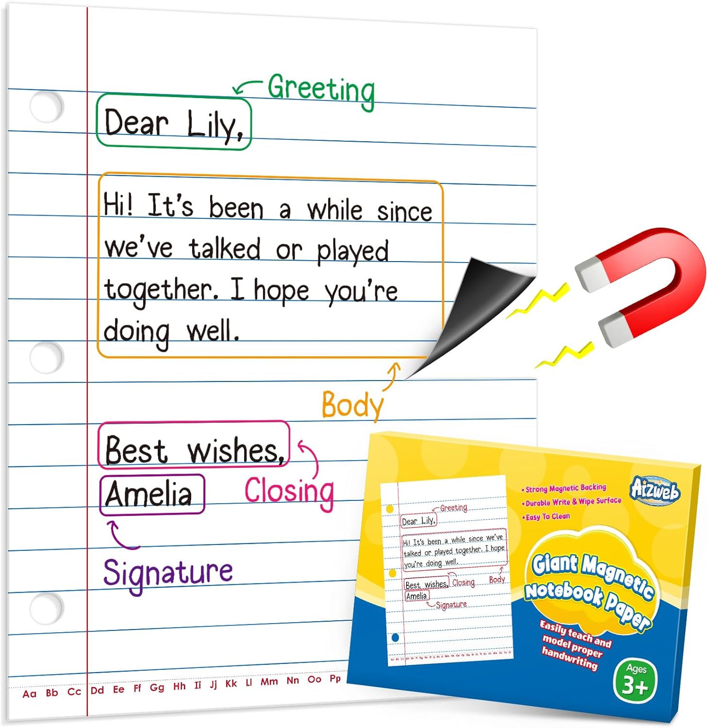 - Easily Teach and Model Proper Handwriting: Our giant-sized magnetic paper makes it easy to demonstrate writing concepts for the whole class at once, like letter formation, spacing between words, and correct upper & lower case letter writing. Explaining how to indent, leave margins, and punctuation.