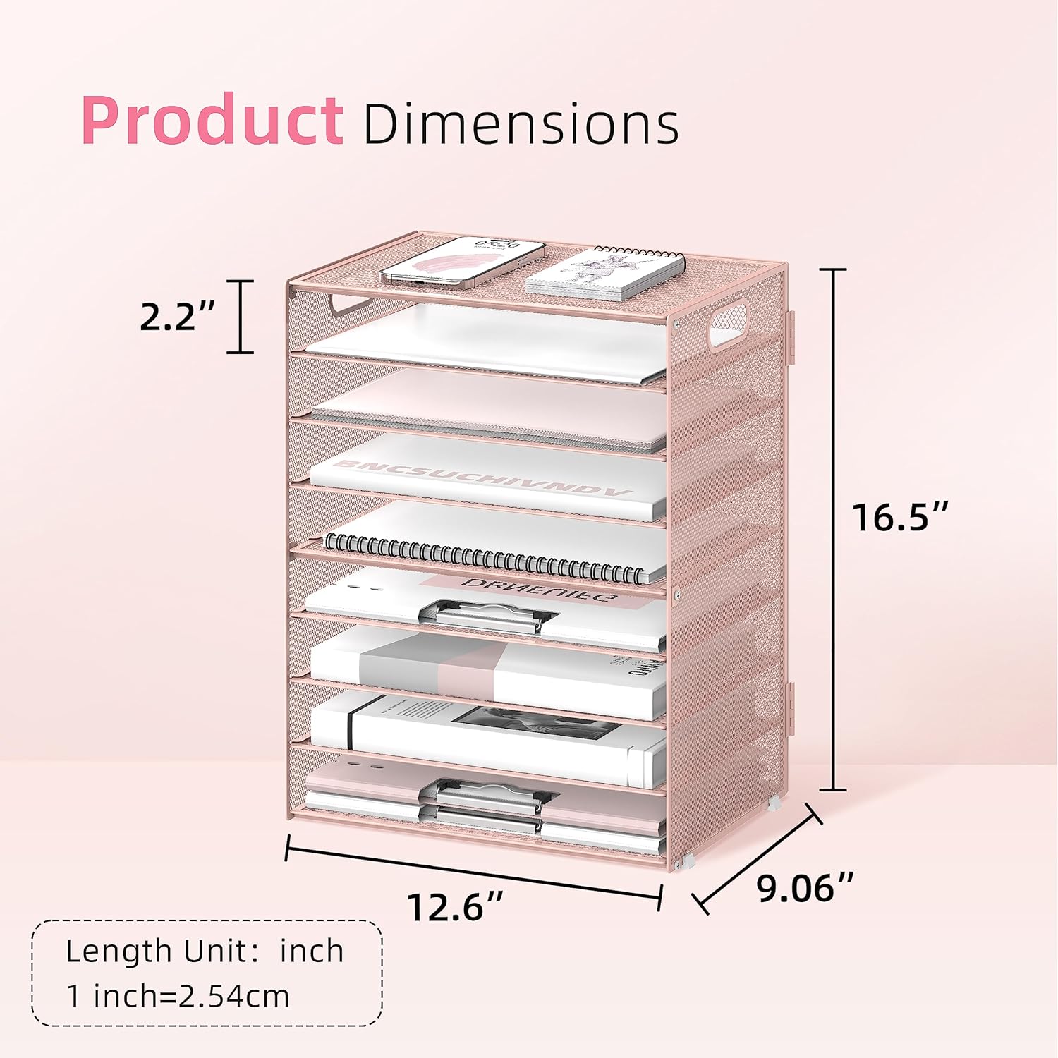 - [Perfect Paper Organizer] The 9-tier paper tray desk organizer has a large capacity for all your office supplies and accessories, such as: letters, paper, printing paper, books, folders, bills, magazines and so on. Keep your desk away from clutter and increase your productivity.