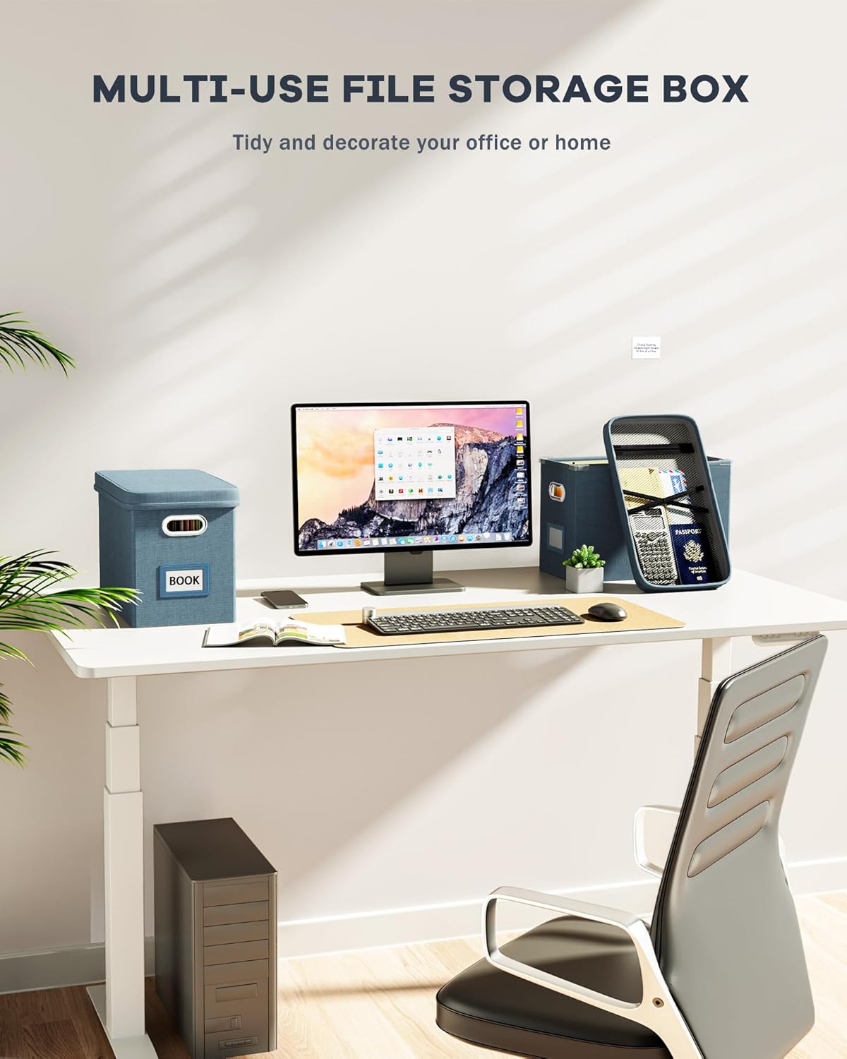 - 【Sturdy & Stackable】Portable storage box is made of well-made linen fabrics and durable material, with good support and bearing capacity, and the box top can withstand 100 lbs. The document boxes can be stacked when in use, or folded for easier storage when not in use.