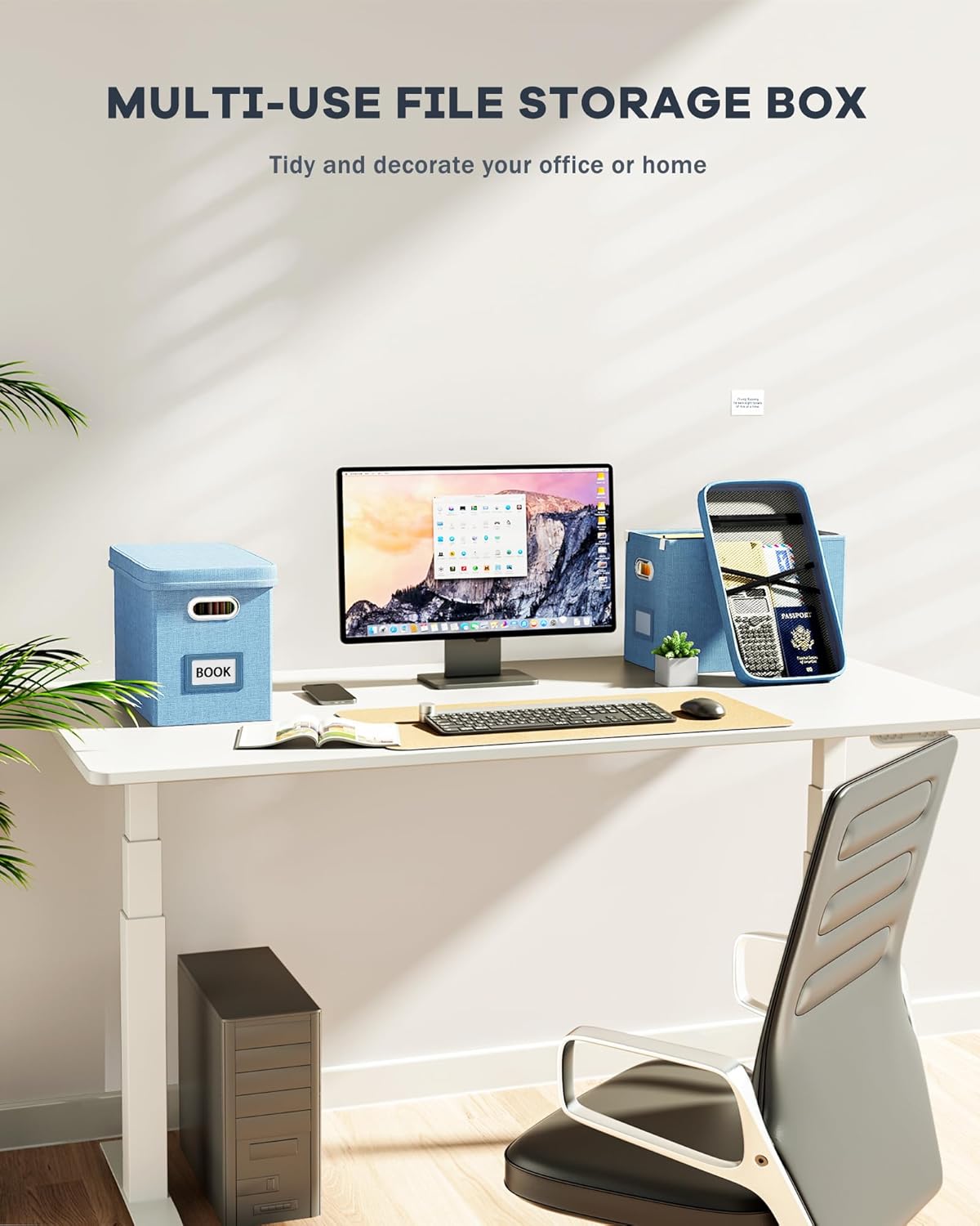 - 【Sturdy & Stackable】Portable storage box is made of well-made linen fabrics and durable material, with good support and bearing capacity, and the box top can withstand 100 lbs. The document boxes can be stacked when in use, or folded for easier storage when not in use.