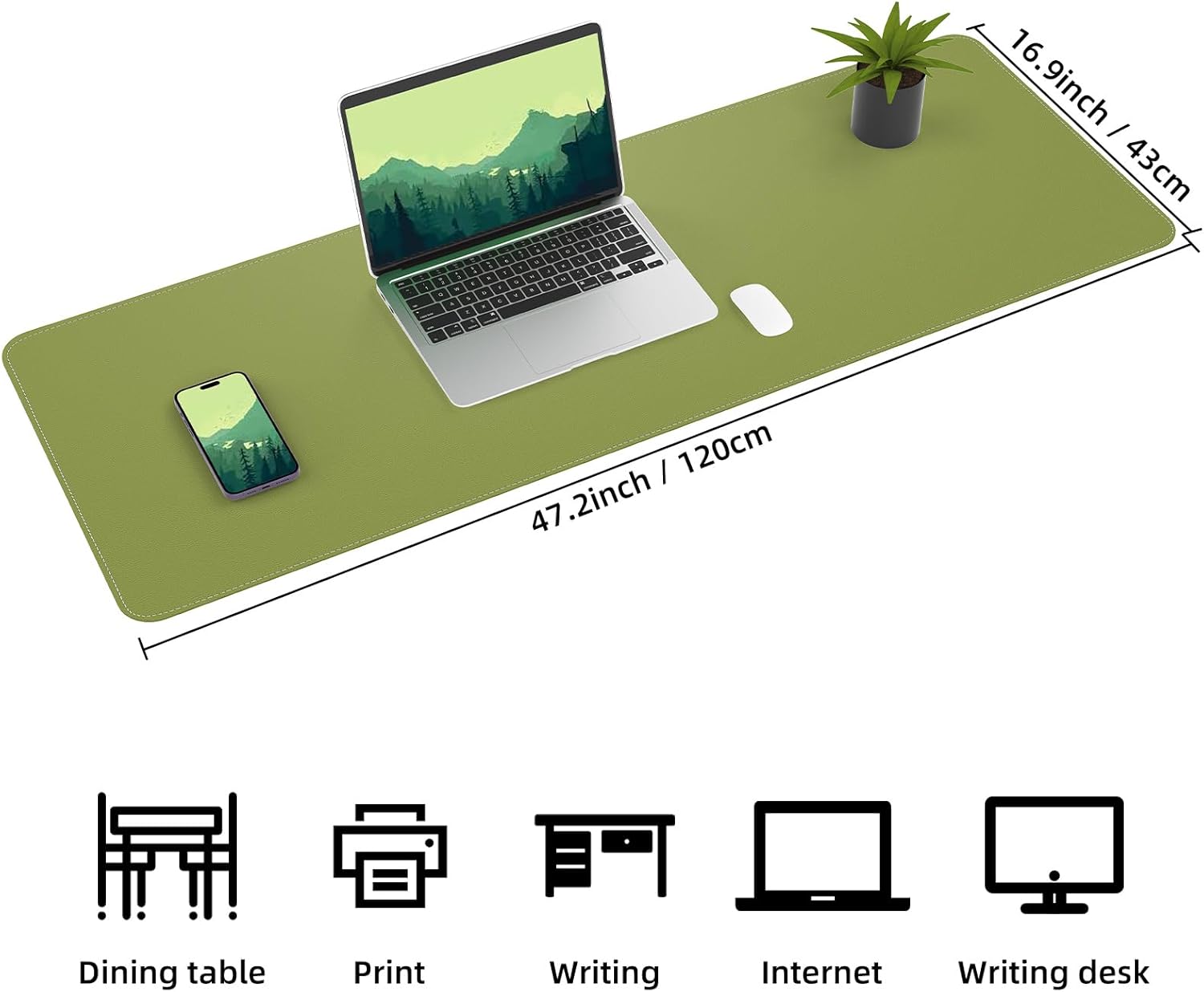 Leather Desk pad Protector, Large Desk mat with Natural Cork & PU Leather,Mouse pad,Non-Slip Office Desk Mat,Waterproof Desk Writing Pad for Office and Home (47in*17in, Olive Green)
