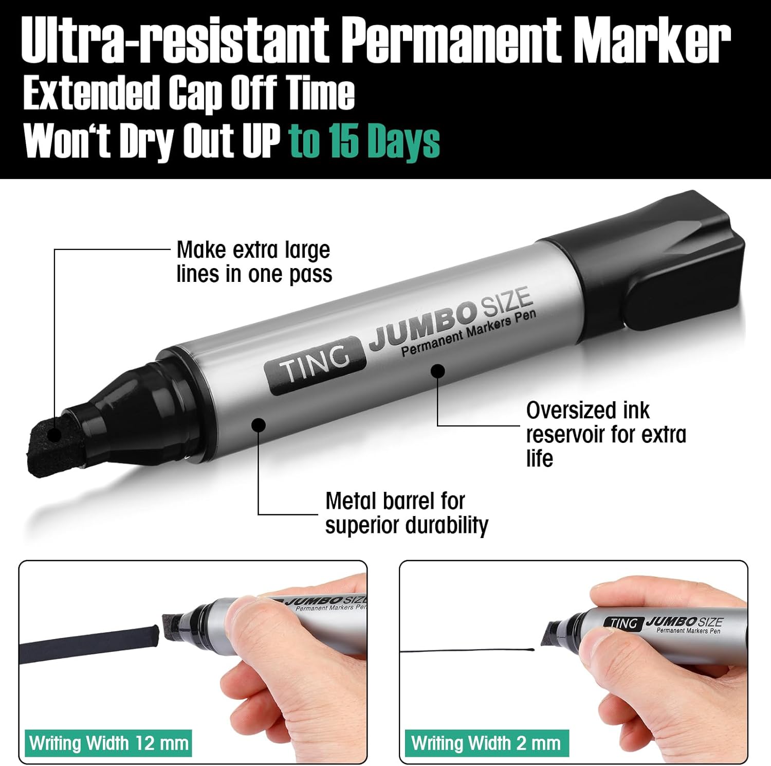 Fuutreo 16 Pcs Jumbo Size Permanent Markers Bulk Large Chisel Tip Permanent Markers Thick Waterproof Jumbo Pens Set Huge Poster Supplies(Black)