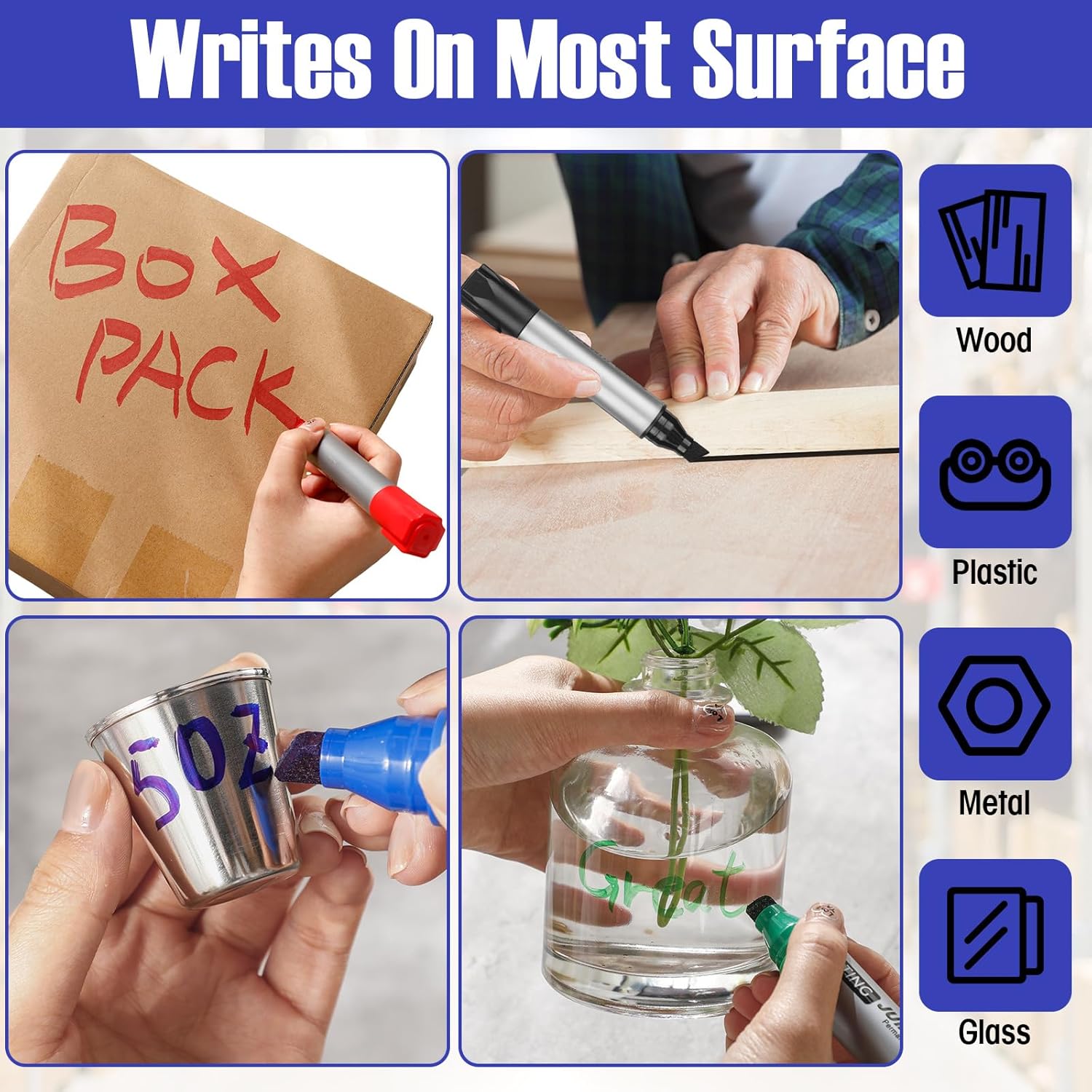 - Chisel Tip Design: The chisel tip design of our thick permanent marker makes them nice for both fine and broad strokes depending on your using needs, convenient and smooth to write