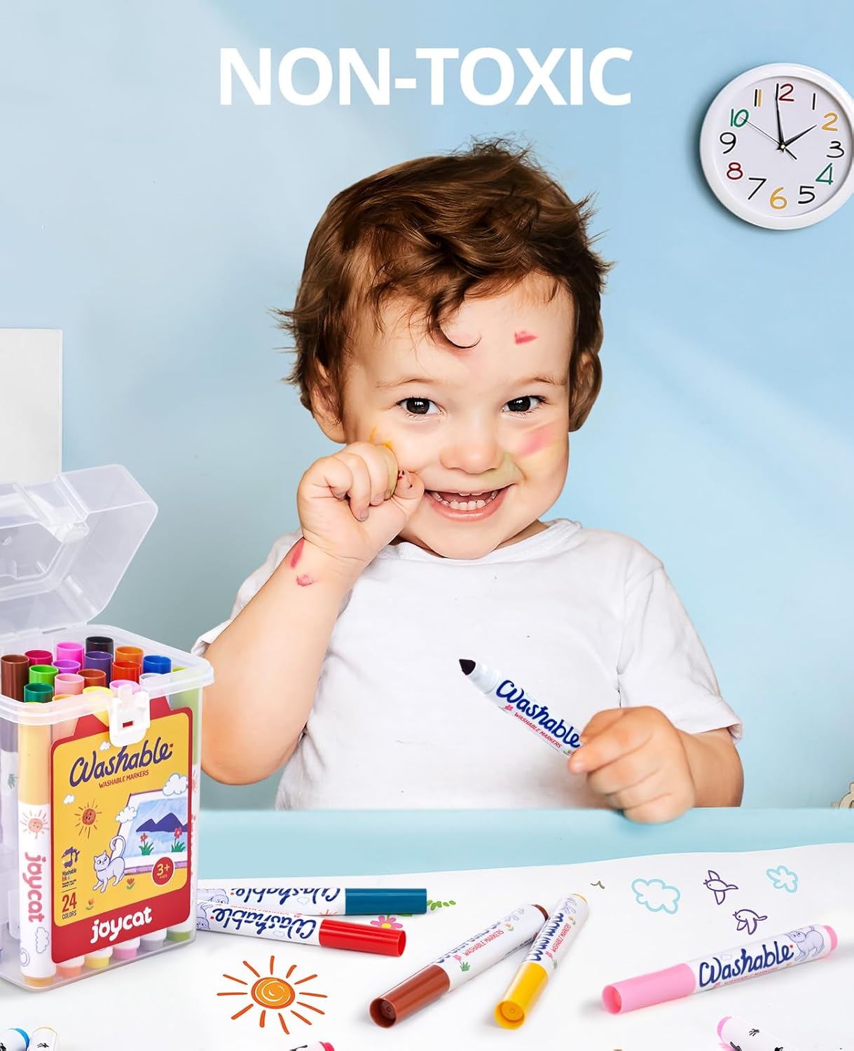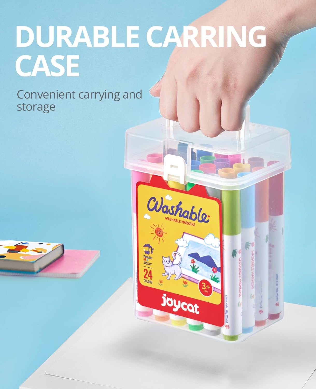 JoyCat 24 Count Washable Markers for Kids, 24 Colors Washable Markers Set with Carrying and Storage Case, Coloring Marker Bulk for Boys Girls, School Classroom Supplies