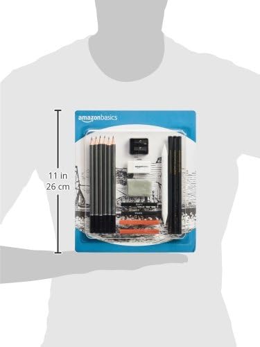 Amazon Basics Sketch and Drawing Pencil Set, 816 Count (17 Packs of 48), Charcoal, Black, White