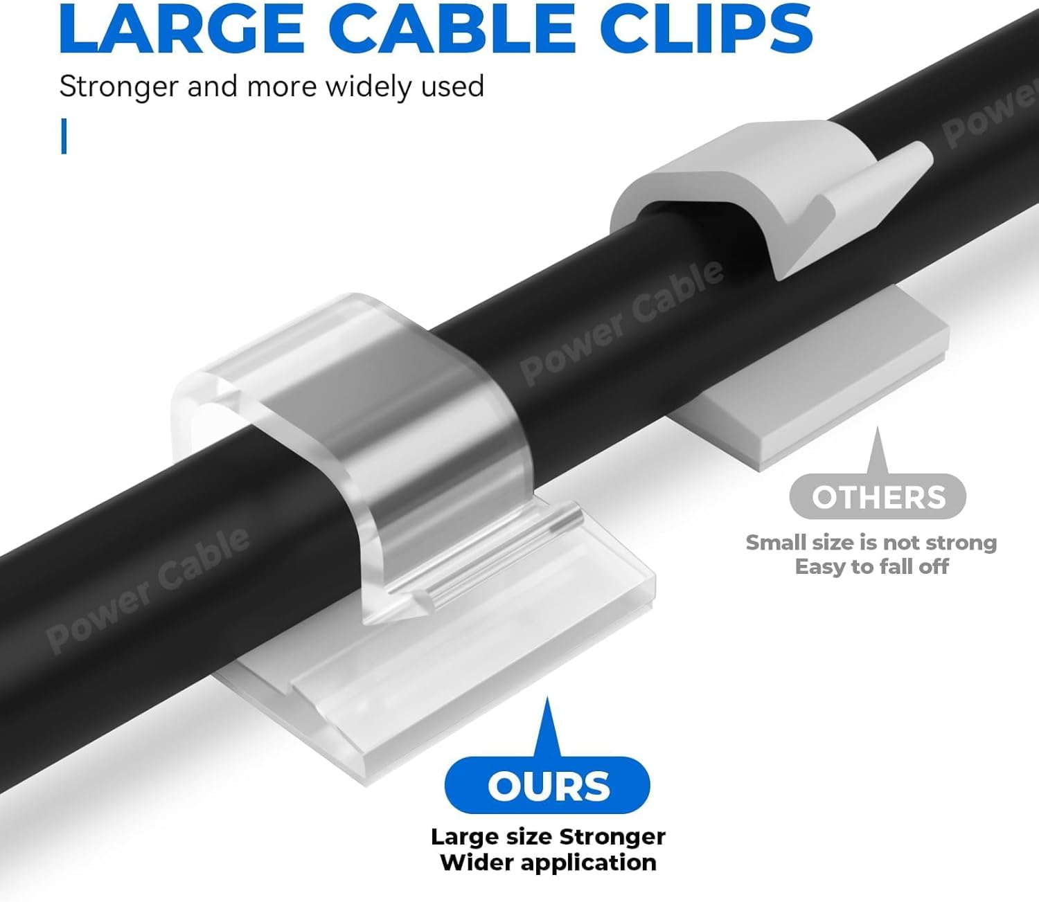 Large Cable Clips 40pcs with Strong Adhesive Tapes,Wire Holder Organizer Cord Management for Car, Office and Home (Clear- L06(40PCS))