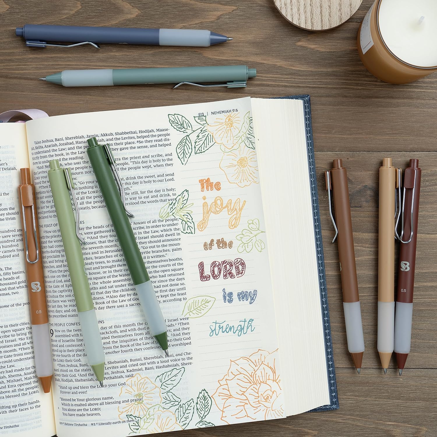 BLIEVE Gel Pens - Earthy, Matte Finish, Smooth Writing, No Bleed - For Journaling, Bible Notes, Drawing - Cute School Supplies, 8 Pack