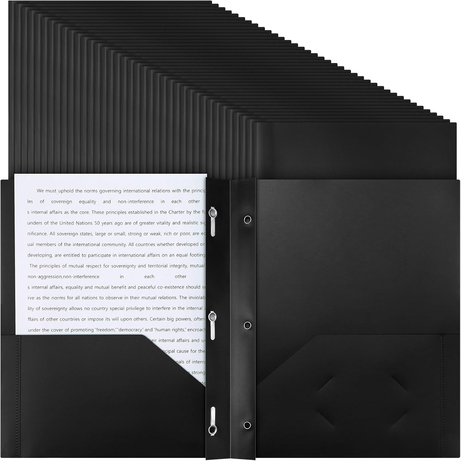 Patelai 48 Pcs Plastic Folders with 2 Pockets and 3 Prongs Home Folders with Card Slot Letter Size Heavy Duty Report Covers for Back to School(Black,Classic)