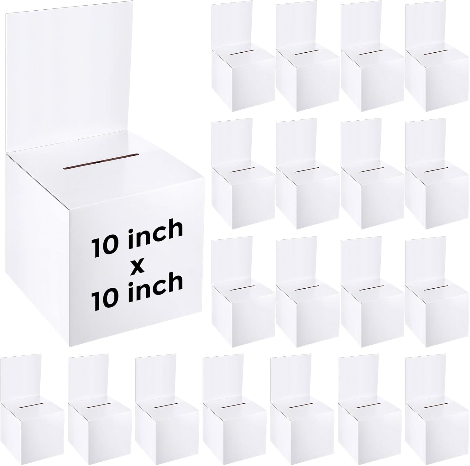 PerKoop 20 Pcs Extra Large Raffle Ticket Box, 10 x 10 x 10 Inch Cardboard Ballot Box with Slot, Large Suggestion Donation with Removable Header for Fundraising Ticket Collecting Voting Contest, White