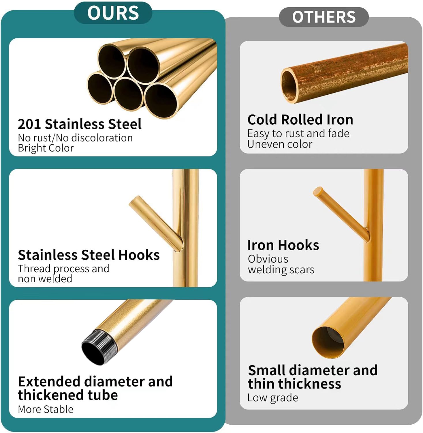 - STURDY STAINLESS STEEL FRAME: The coat rack freestanding is made of stainless steel. The thickened stainless steel coat rack standβs main pole is more load-bearing and can be stored in multiple layers to meet all seasonal needs