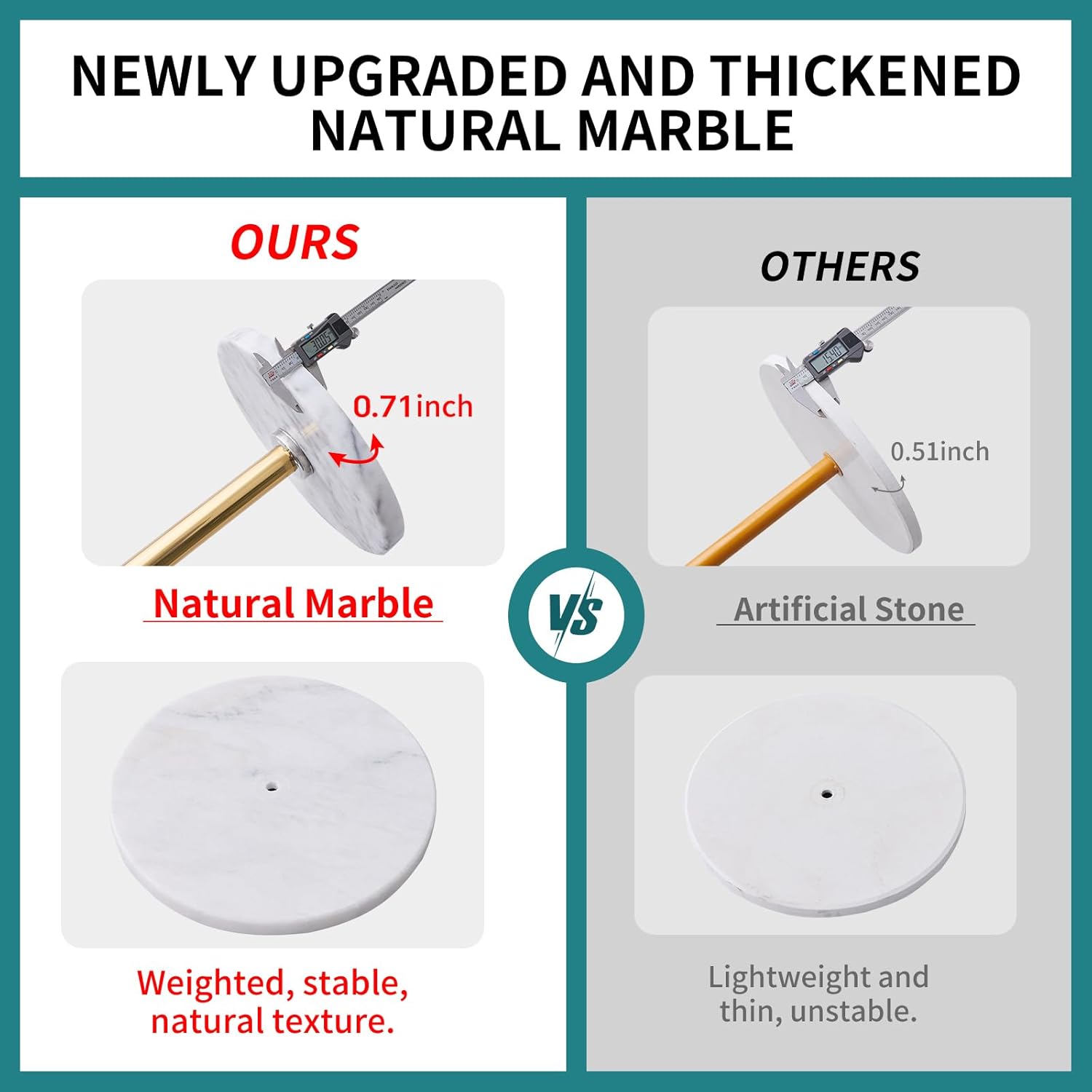 - THICKENED NATURAL MARBLE BASE: OIRUMIE coat rack base stand is made of 100% natural marble. The diameter of the marble is 11.81 inches, The thickness of the marble is 0.71 inches, which is stable and not shaking. The coat racks are convenient for storage and easy to clean