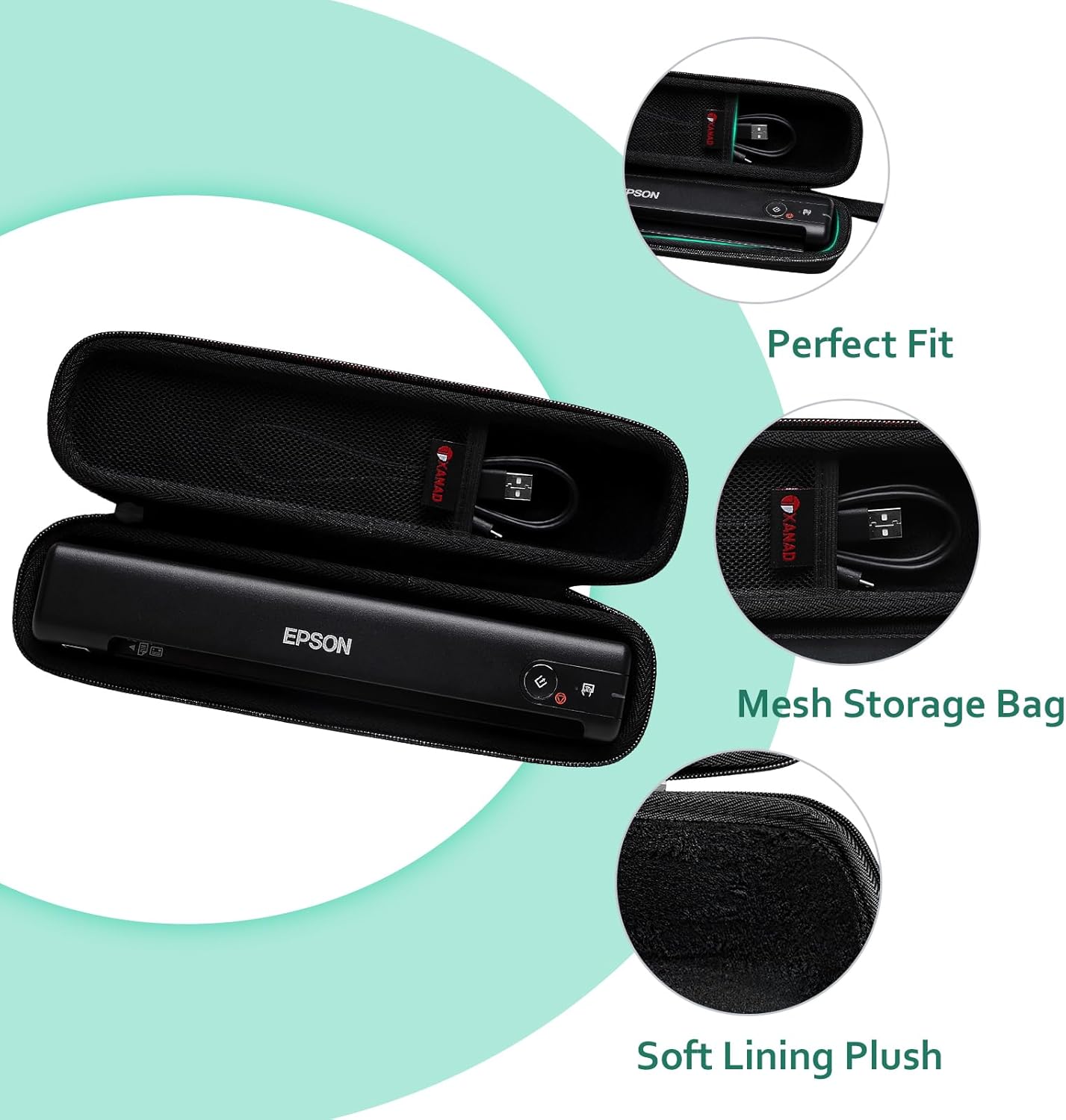 XANAD Black Case for Epson Workforce ES-50 / ES-55R / ES-60W / ES-65WR / DS-30 / DS-70 / DS-80W Document Scanner (Case Only)