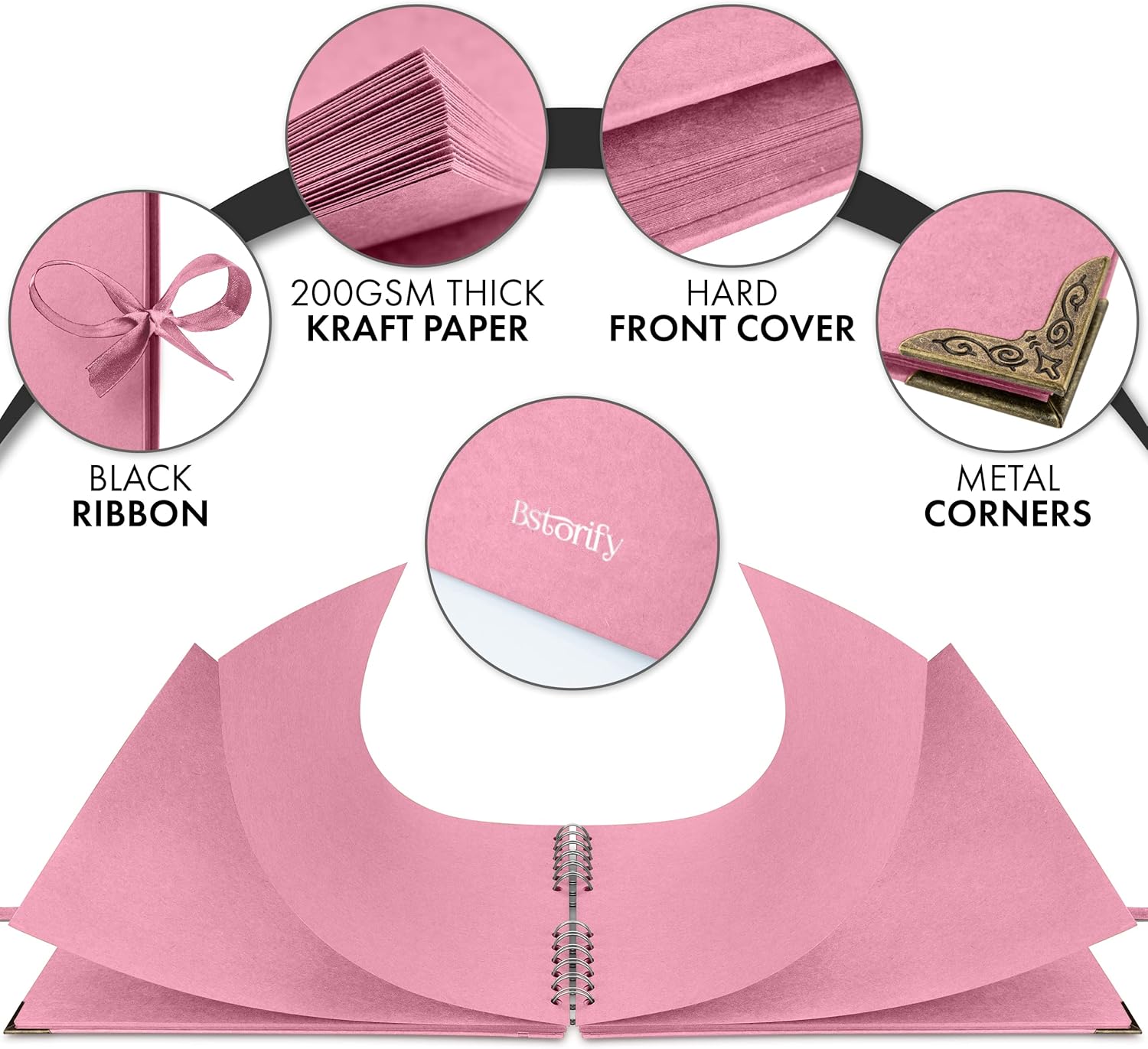 Bstorify Square Scrapbook Photo Albums 50 Pages (11 x 8.5 Inch) Pink Thick Paper, Hardcover, Ribbon Closure - Ideal for Your Scrapbooking Albums, Art & Craft Projects (Pink, 11 x 8.5 Inch)
