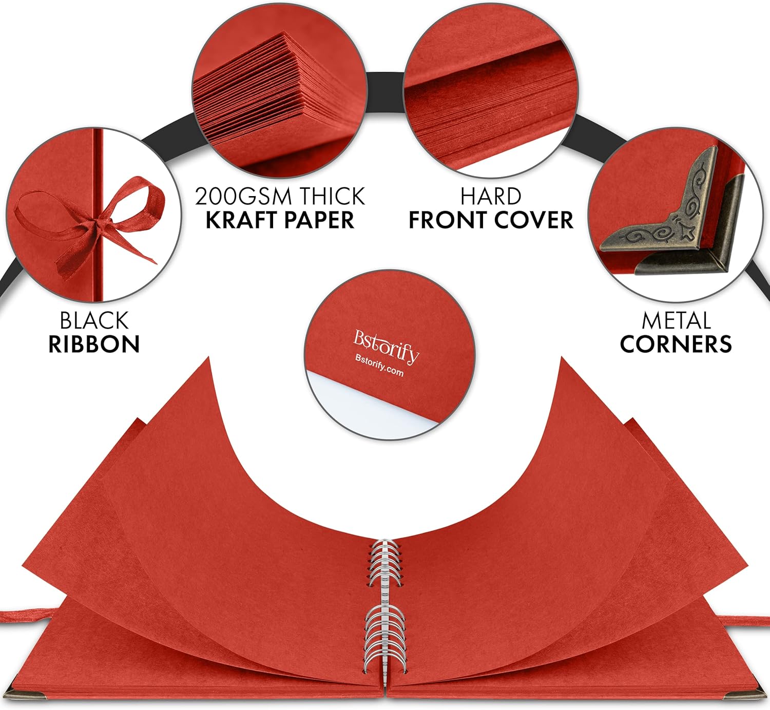 Bstorify Square Scrapbook Photo Albums 8 x 8 Inch Red Thick Paper, Hardcover, Metal Corners, Ribbon Closure - Ideal for Your Scrapbooking Albums, Art & Craft Projects