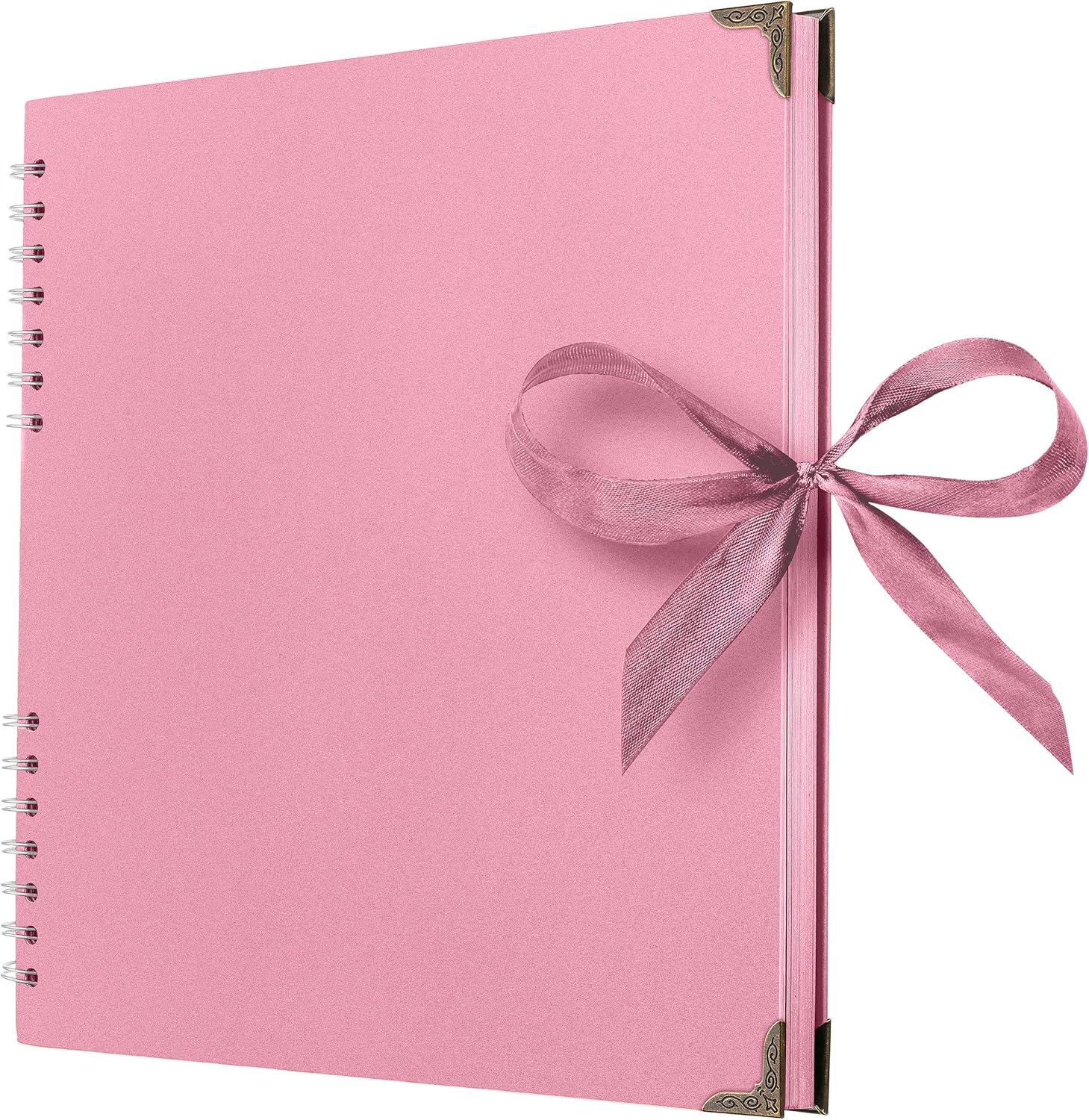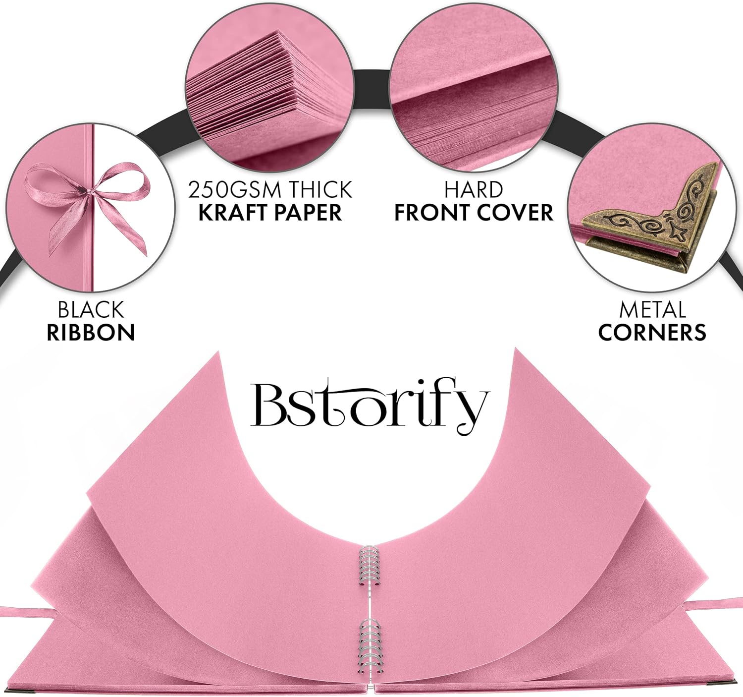 Bstorify Square Scrapbook Photo Albums 80 Pages (11 x 11 Inch) Pink Thick Paper, Hardcover, Ribbon Closure - Ideal for Your Scrapbooking Albums, Art & Craft Projects (Pink, 11 x 11 Inch)