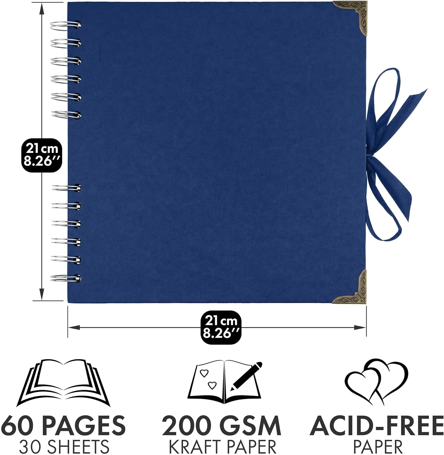 - This 8 x 8 Inch scrapbooks is durable and suitable for long term storage for you and your loved ones beautiful memories. It has 30 sheets, 60 pages of high quality thick paper, designed with ribbon closure, hard cover and corner protectors