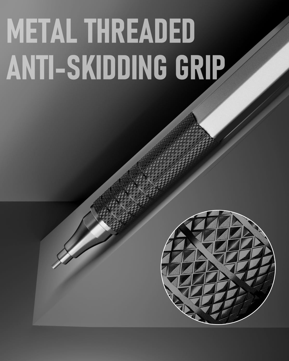 - Unmatched Performance: The full- metal body mechanical pencil with state-of-the-art engineering, gives it a professional look, these lead pencils provide a smooth, precise writing experience; The rhombus textured grip ensures comfortable handling.