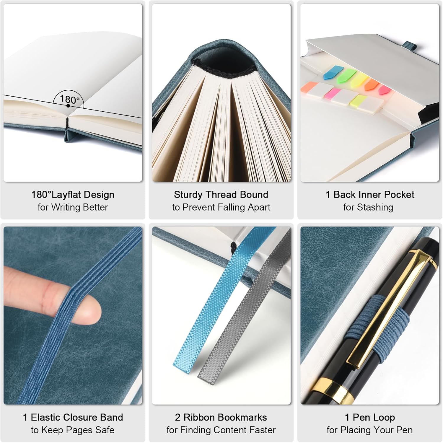 - ăTough & Stylish HardcoverăCrafted from TOP-NOTCH VEGAN LEATHER with distinctive texture, which is animal-friendly and boasts a luxurious look. DURABLE hard cover provides superior protection to your pages compared to softcover, while offering a stable writing surface. Featuring an innovative thread-bound binding that allows for easy LAY-FLAT use, catering to both right-and left-handed users.