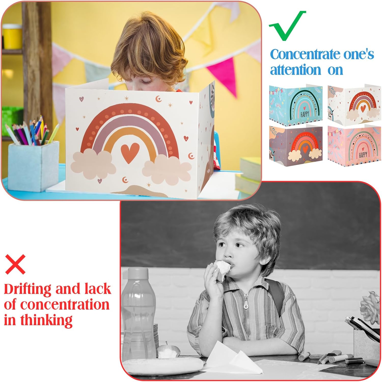 - Focus Attention: the desk dividers for students are high enough to help students focus and reduce distractions; They also make it easy for teachers and parents to monitor children's learning, avoid cheating; Besides, they can help reduce distractions from the classroom and family, and create a quiet, private environment for children