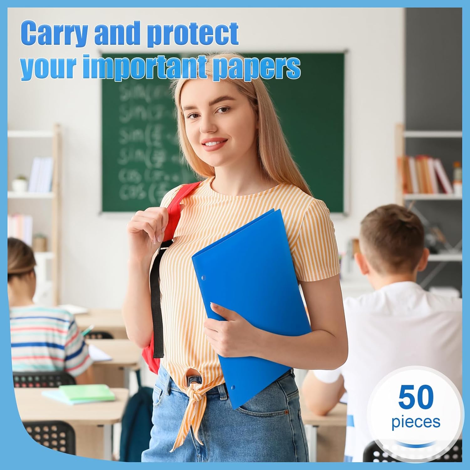 - Enough Quantity to Use and Replace: you will receive 50 pieces blue plastic pocket folders, each with 3 holes and 2 pockets, fitting 3 ring binders and 8.5 x 11 inch letter size paper; Each pocket easily and neatly stacks 50 pages of letter size paper