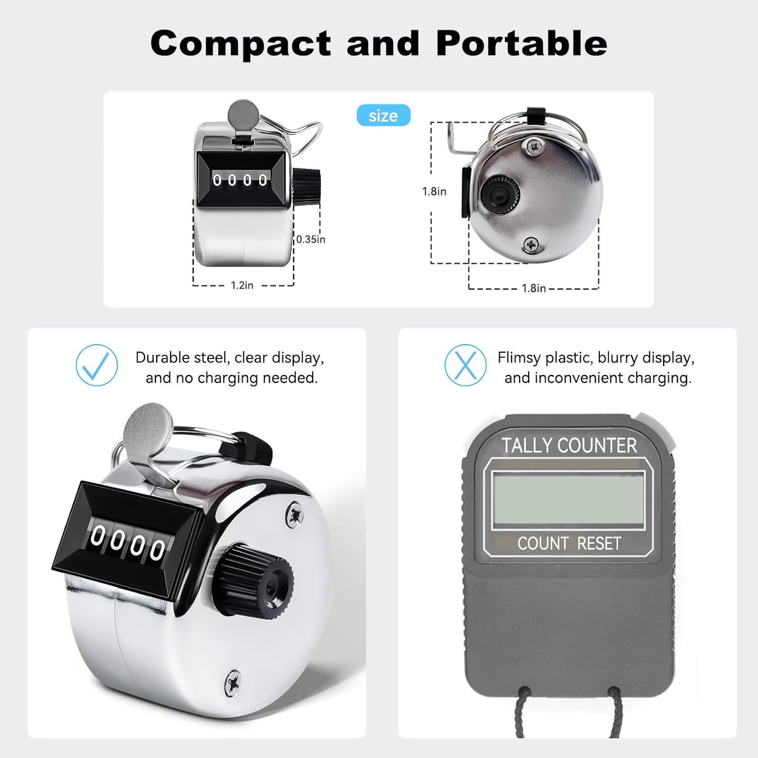 - ROCK-SOLID METAL BUILD: Crafted from high-quality stainless steel, this metal hand counter is built for longevity; Its durable internal mechanical structure ensures unwavering reliability for countless clicks, making it a dependable tool over flimsy plastic alternatives