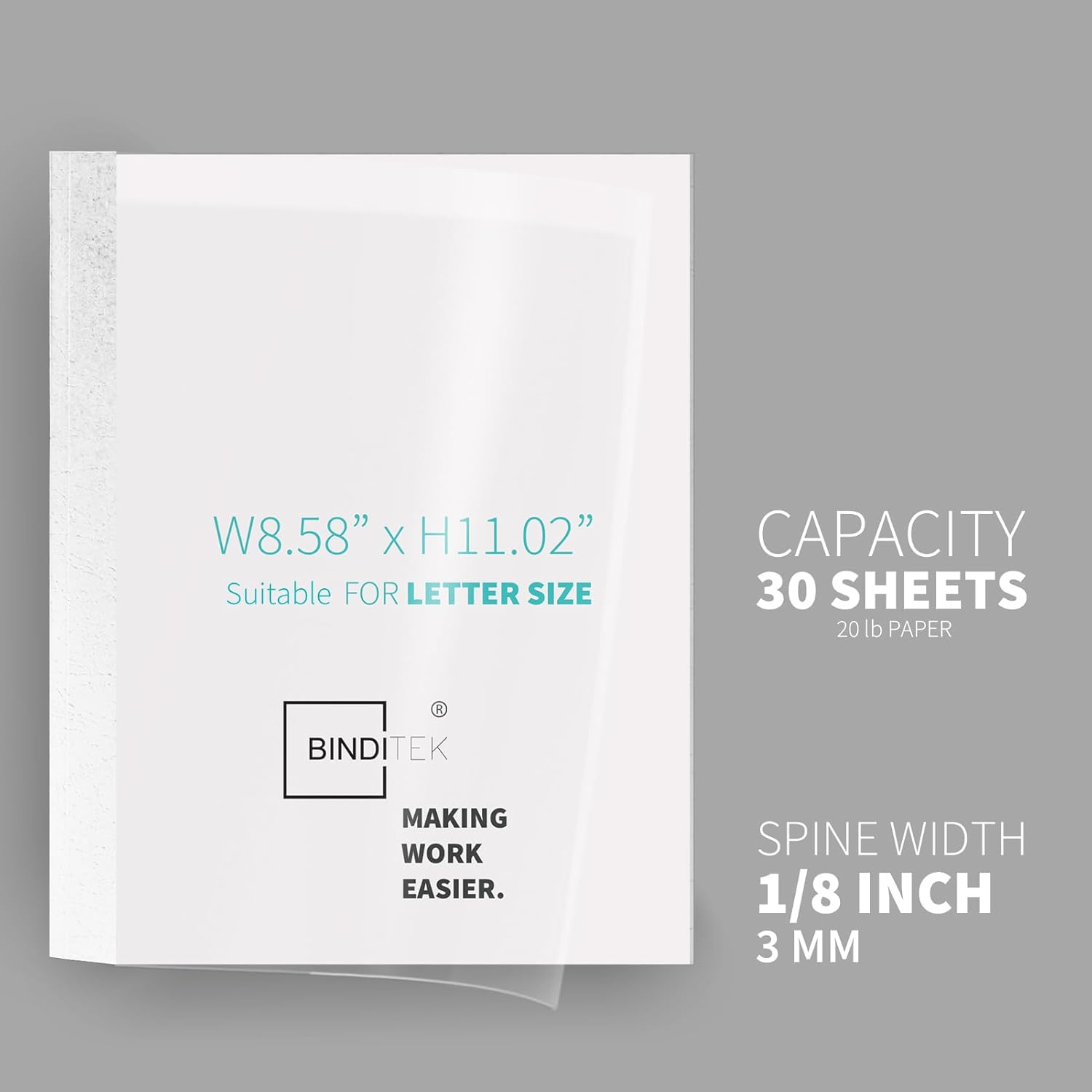 Binditek 10 Pack Thermal Binding Presentation Covers, 1/8 Inch Spine, Holds 30 Sheets, Ultra Clear Front Cover, White Paper Back Cover, Letter Size, for Students and Coworkers