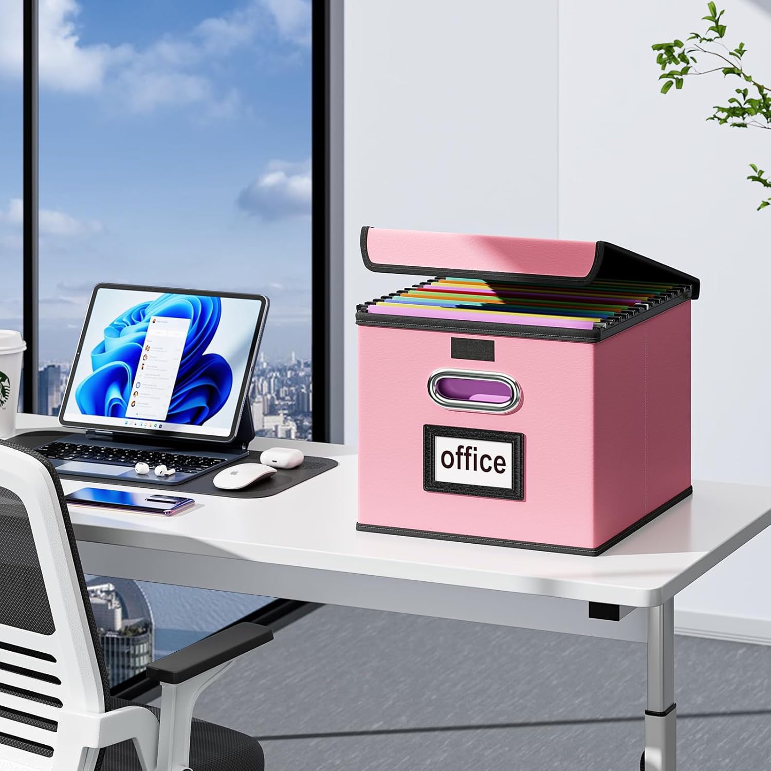 - Collapsible Multifunctional Filing Storage Organizer - The outer box with leather can be dustproof, inside and the bottom support is made of thickened cardboard, which is environmentally friendly and not easily deformed. The cover with Velcro not only allows us to cover the file box easily, but provides more storage space for the file. It also acts as a small filing cabinet for tax documents, legal files and other documents storage. When we are not using it, we can fold it up to save space.