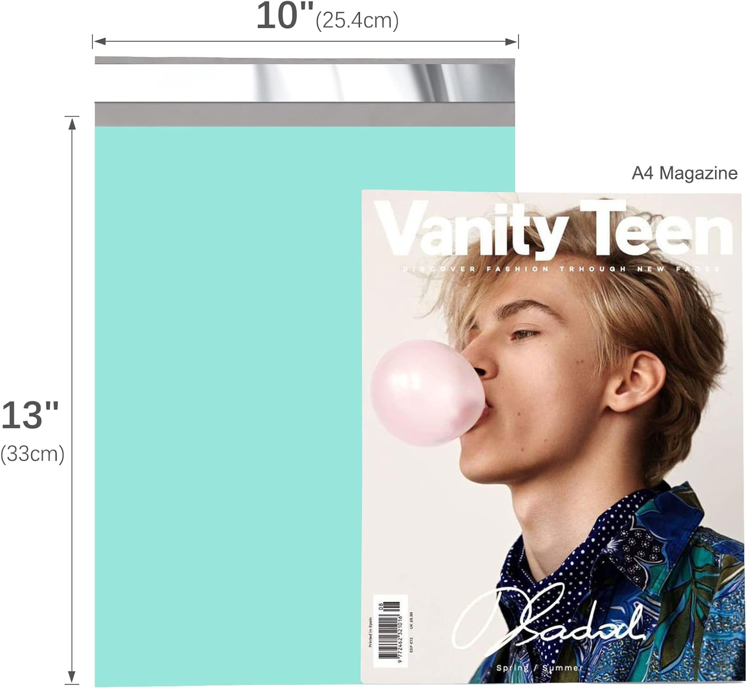 - 10x13 Poly Mailers-The Fuxury 10x13 plastic shipping bags,pack of 50pcs,with light green color.The brand new light green lets eyes bright,adds more colors for dull moments of shipping and life.This unique attractive color helps the parcel to stand out and your dear customer find them easily.