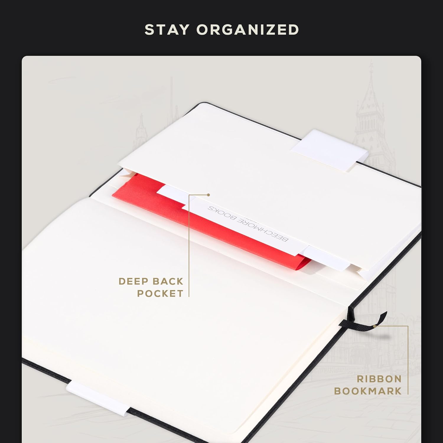 - ENGINEERED TO PERFECTION: Our in-house bookbinding process ensures that journals are built to last. With a secure elastic closure, pen holder, bookmark ribbon, and 180Β° lay-flat binding, our journal is designed for easy and convenient notetaking. It also has a deep back pocket for storing stickers, notes, or other essentials.