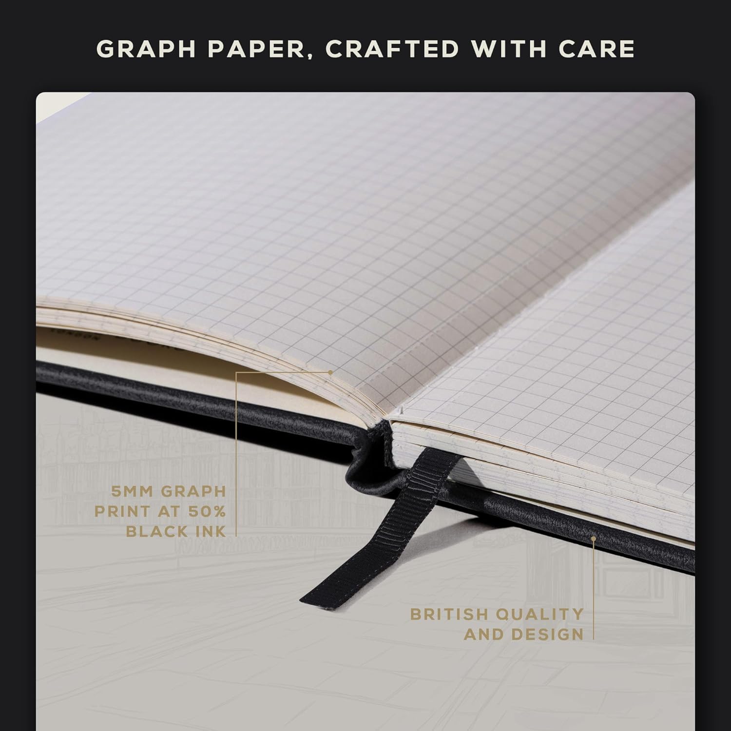 BEECHMORE BOOKS Graph Paper Notebook - Regular, Black | Premium Square Grid Math & Science Journal | 5.75" x 8.25" Hardcover Vegan Leather | Thick 120gsm Cream Graph Paper | Gift Box for Men & Women