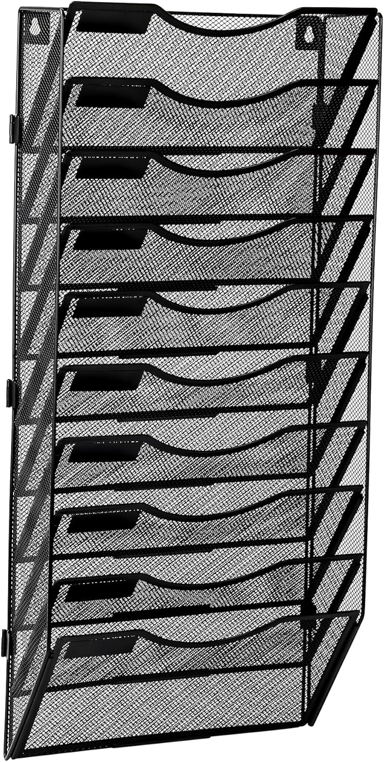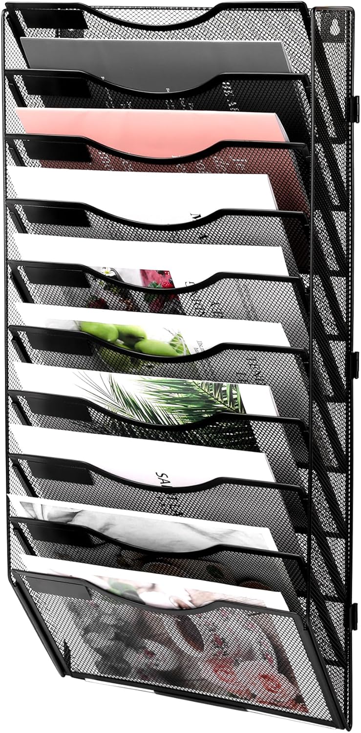 - Space Saving: 10 tier metal wall file organizer comes with mounting screws that can be easily mounted on the wall. Use your home or office space more efficiently by keeping your files organized and off the desk and workspace.