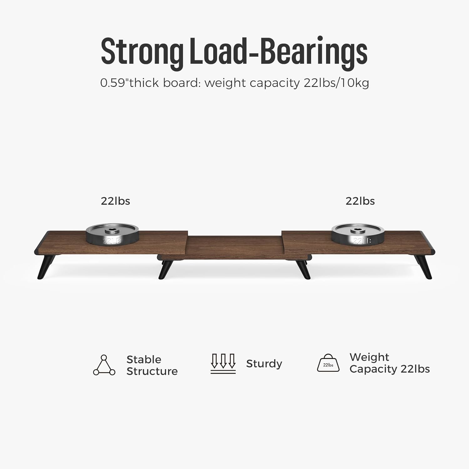 loukin Dual Monitor Stand Riser for Desk, 43.6"*8.2"*3.2" Large Computer Stand for 2 Monitors, Laptop, Printer, Length and Angle Adjustable Computer Shelf, Home Office,Max 43.6" Length(Brown)
