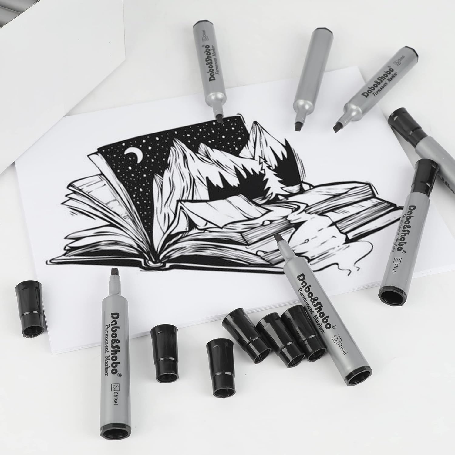 Dabo&Shobo 72 Pack Permanent Markers, Chisel Point, Quick Drying Ink, Black Permanent Markers, Works on Plastic,Wood,Stone,Metal and Glass for Doodling, Marking…