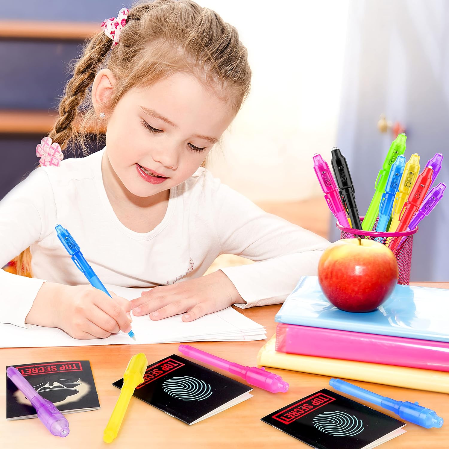 - Awesome Kids Party Favors - These glow in the dark party supplies are an ideal and unique kids party favors for kids 8-12. Suitable for any occasions like birthday parties, classroom prizes, or goodie bag stuffers. Perfect spy kit for games like the escape room, spy games, riddles, skin tattoos, etc. Whether youβre looking for a game for your kids or organizing a spy party, this invisible ink pen set will provide hours of entertainment.