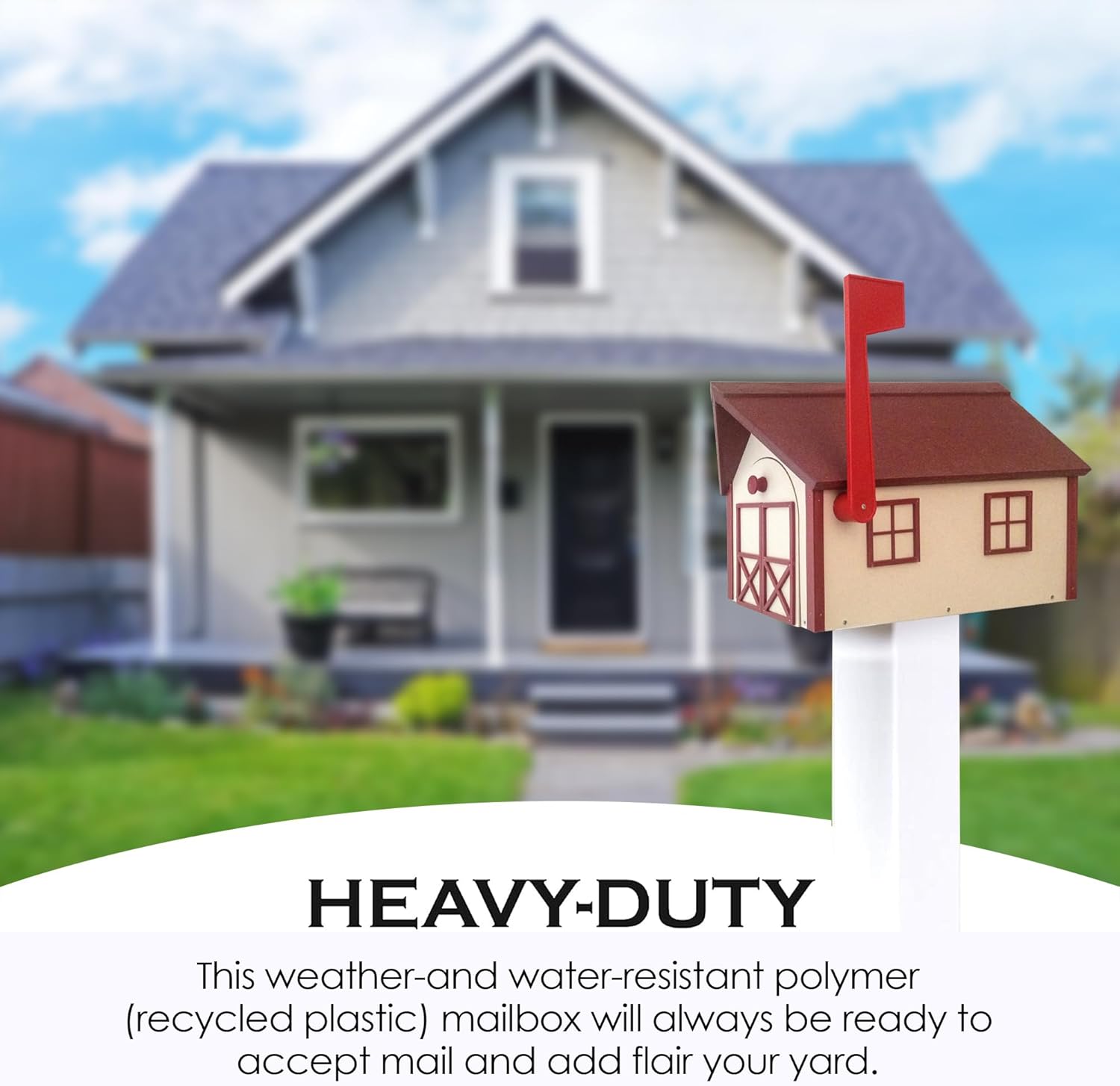 Peaceful Classics Poly Mailbox Durable, Weather-Resistant Amish Craftsman Mailboxes for Outside Uses Like Front Yard and Road Side Long-Lasting, Decorative, Modern Mailbox (Beige w/Red Trim and Roof)