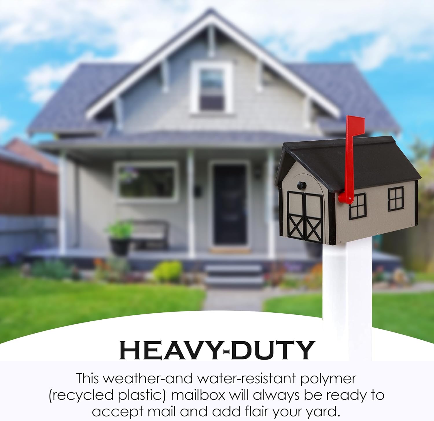 - MADE OF WATER-RESISTANT MATERIAL: Wooden mailboxes may not withstand exposure to the elements so we offer a better alternative. Designed for outdoor uses, our poly-material (recycled plastic) mailbox can hold up in any weather. Rain or shine, this weather- and water-resistant small mailbox will always be ready to accept your mails and decorate your lawn.