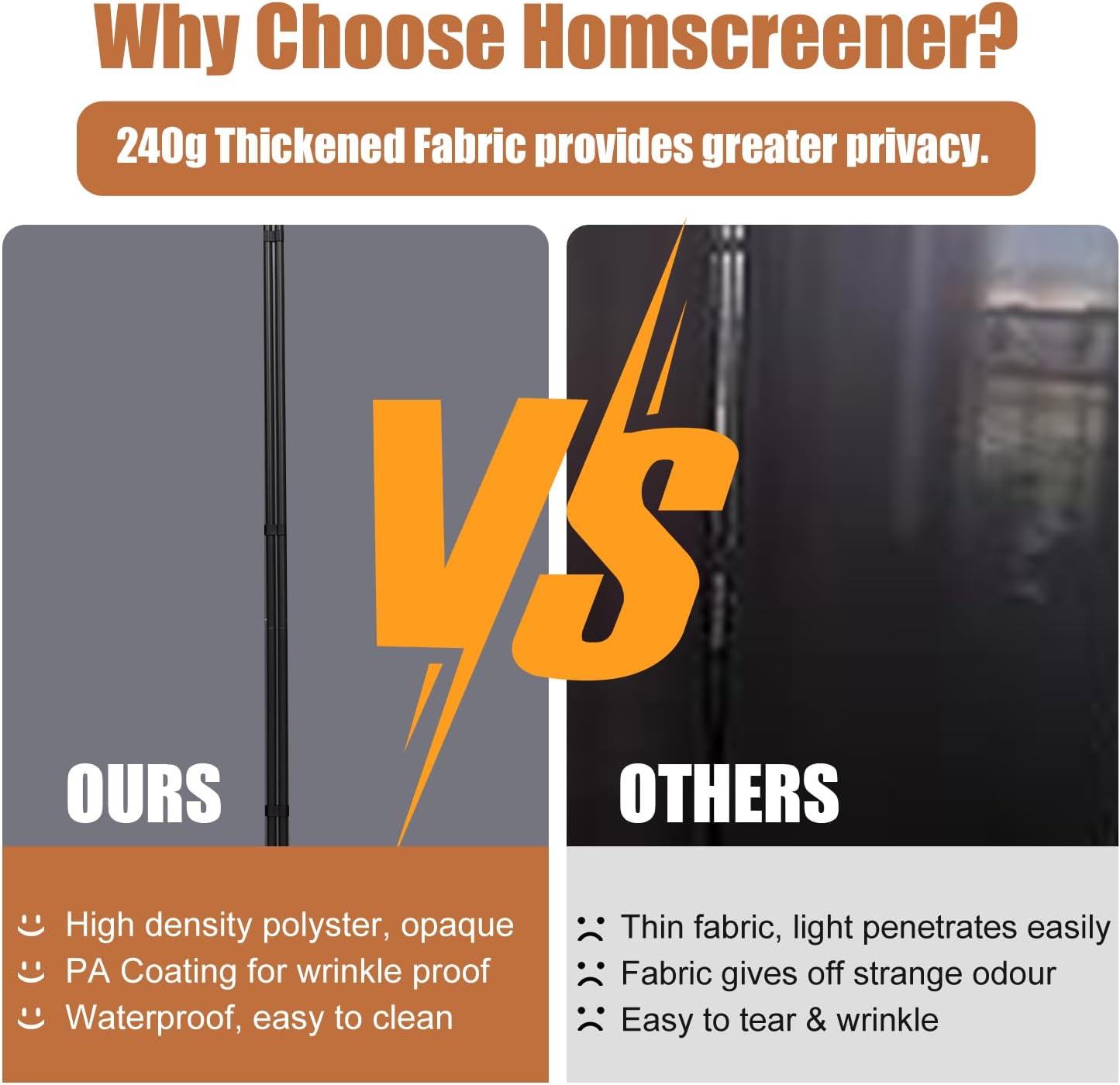 - Upgraded & Long service life: The room divider frame is made from Ο20mm steel tubes with frosted coating to resist corrosion and rust. The 240gsm thicker cloth provides superior concealment and is impervious to light. The PA coating makes the polyster fabric wrinkle-proof and tear-proof. The upgraded room divider is easy to clean, just wipe gently with a cloth