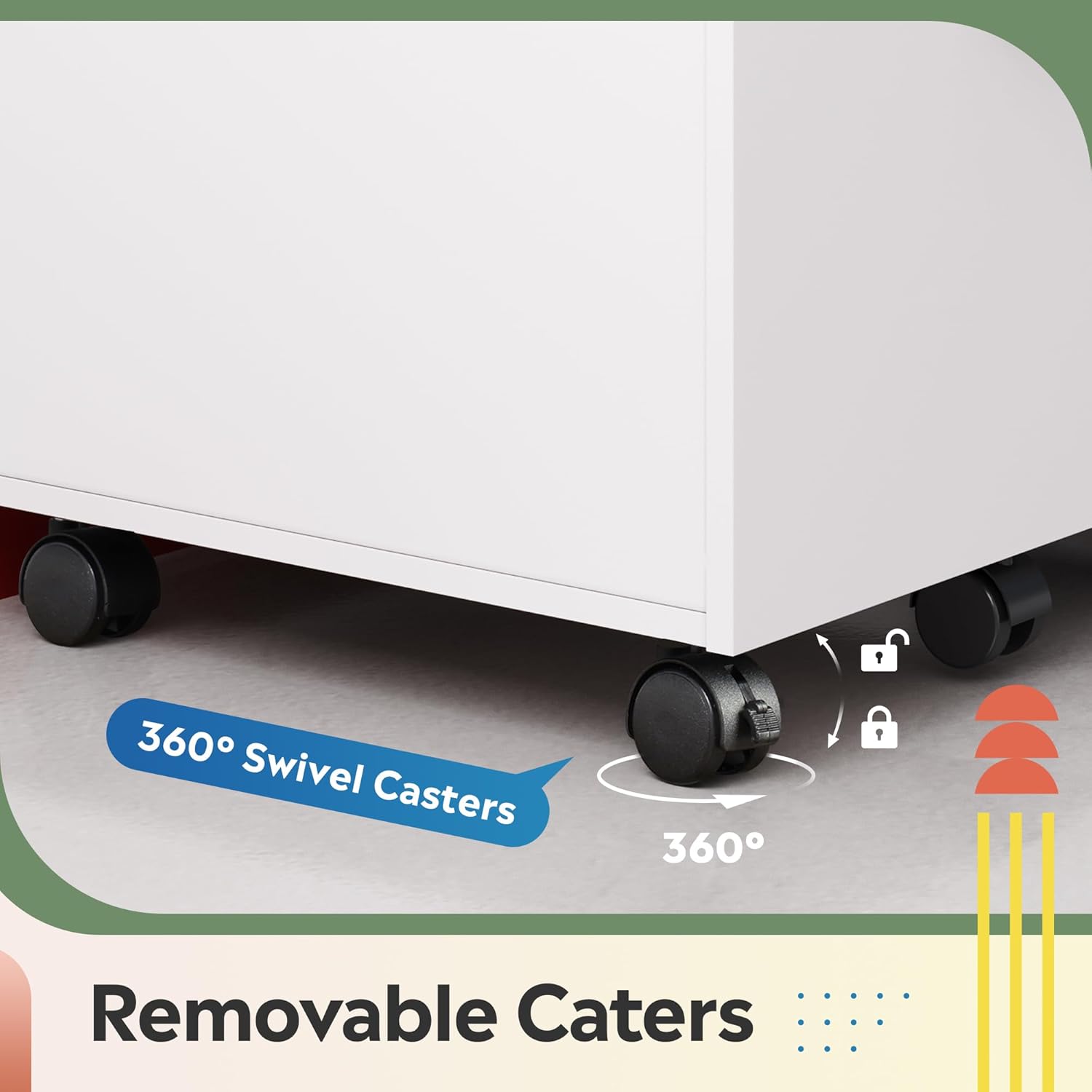 - ăStability & Mobilityă The file cabinet is equipped with 5 casters for easy movement in your home office. The front two casters have built-in brakes to hold the cabinet in place, while the central anti-tip wheel prevents overturning and enhances stability.