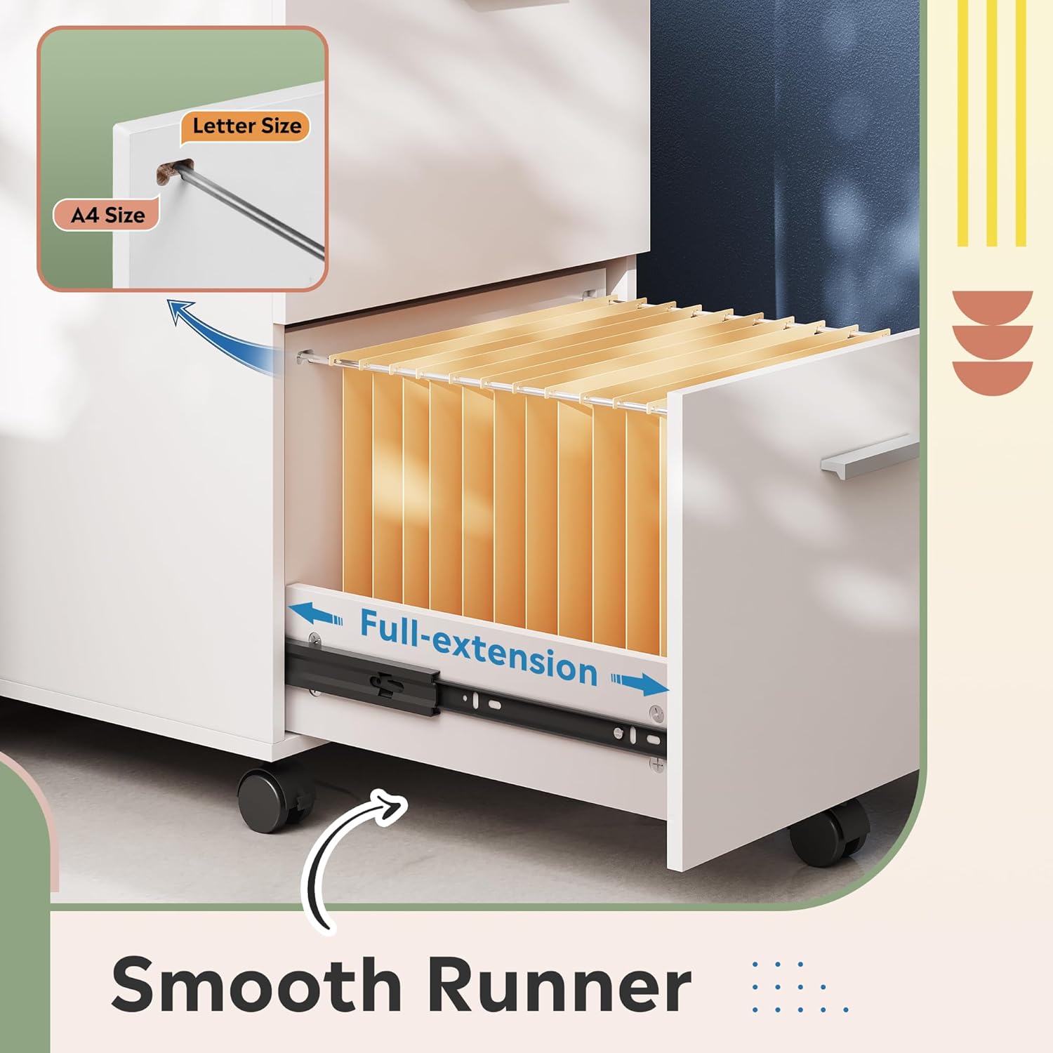 - ăAmple Storage SpaceăThis 2-drawer file cabinet is equipped with a sturdy, adjustable metal rod suitable for hanging Letter/A4 size folders, capable of supporting a full load. It can function as a printer stand, with 2 spacious drawers providing ample room for printer paper or sundries. Additionally, it can serve as a bedroom vanity for household essentials.