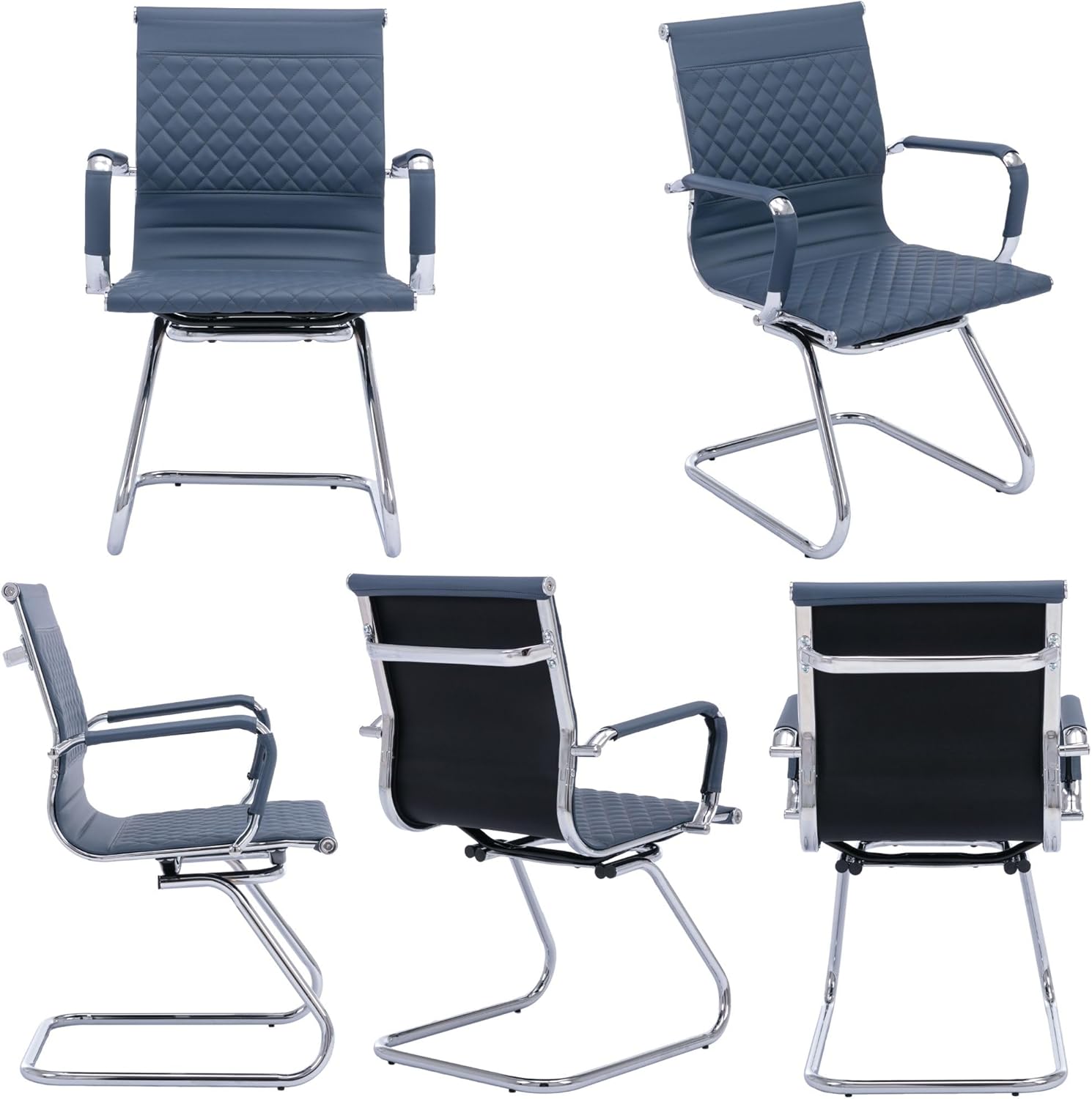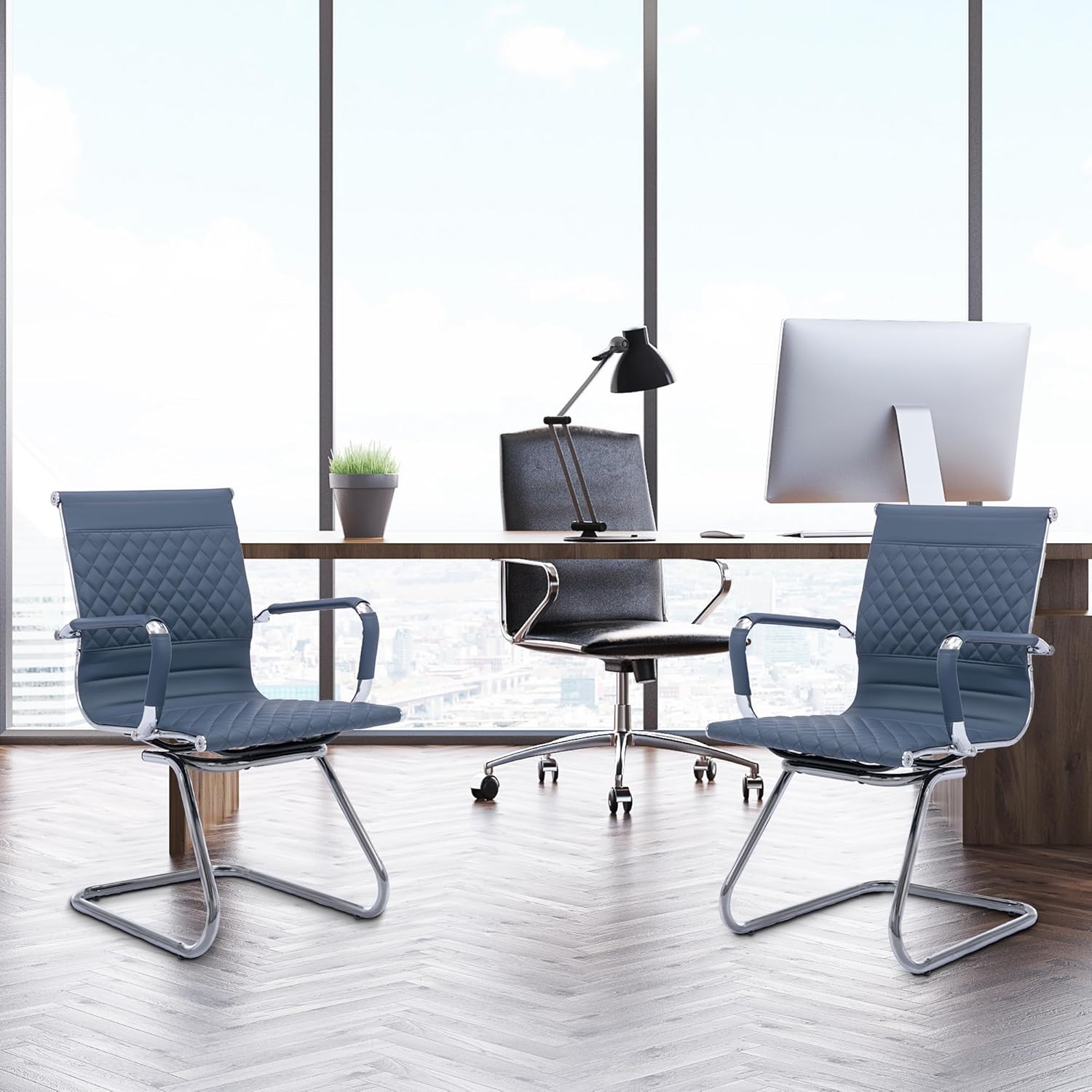 Office Guest Chairs Reception Chairs Waiting Room Chairs Set of 4 Conference Room Chair with Mid Back, Modern PU Leather Desk Chairs, Navy