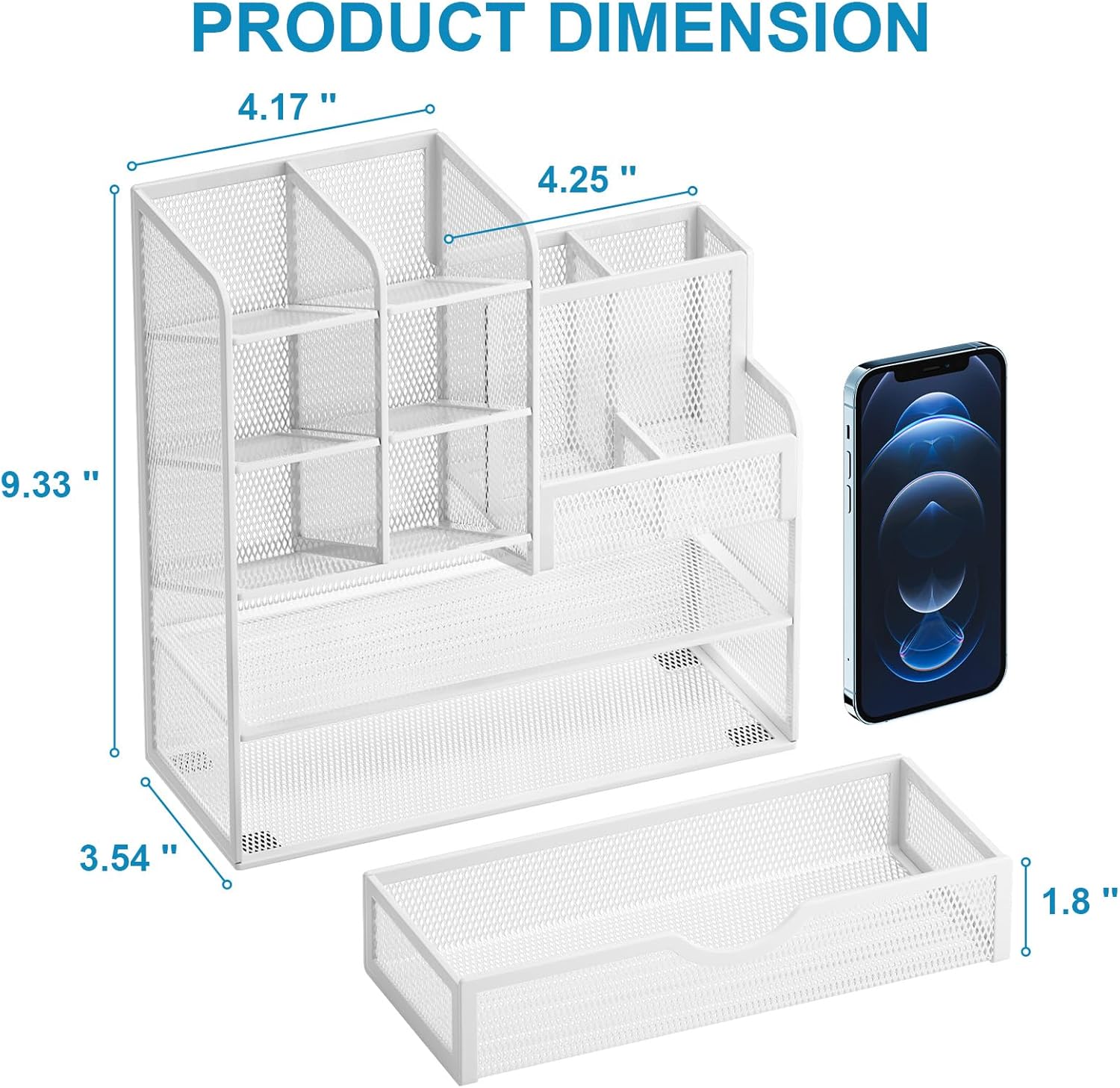 Marbrasse Mesh Pen Holder for Desk, Multi-Functional Pencil Organizer with Drawer, Desk Organizers and Accessories for Office Art Supplies (White)
