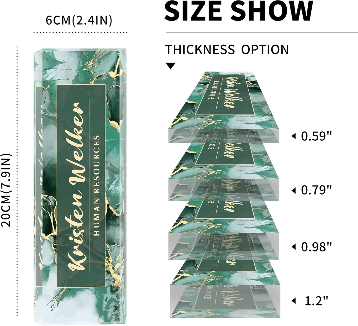 - 🎁Premium Quality: The personalized name sign plates are made of high quality crystal clear acrylic blocks. This office nameplate will stand out on any desk! We use high-tech uv printers to print on quality clear acrylics glass so you can visualise your memories.