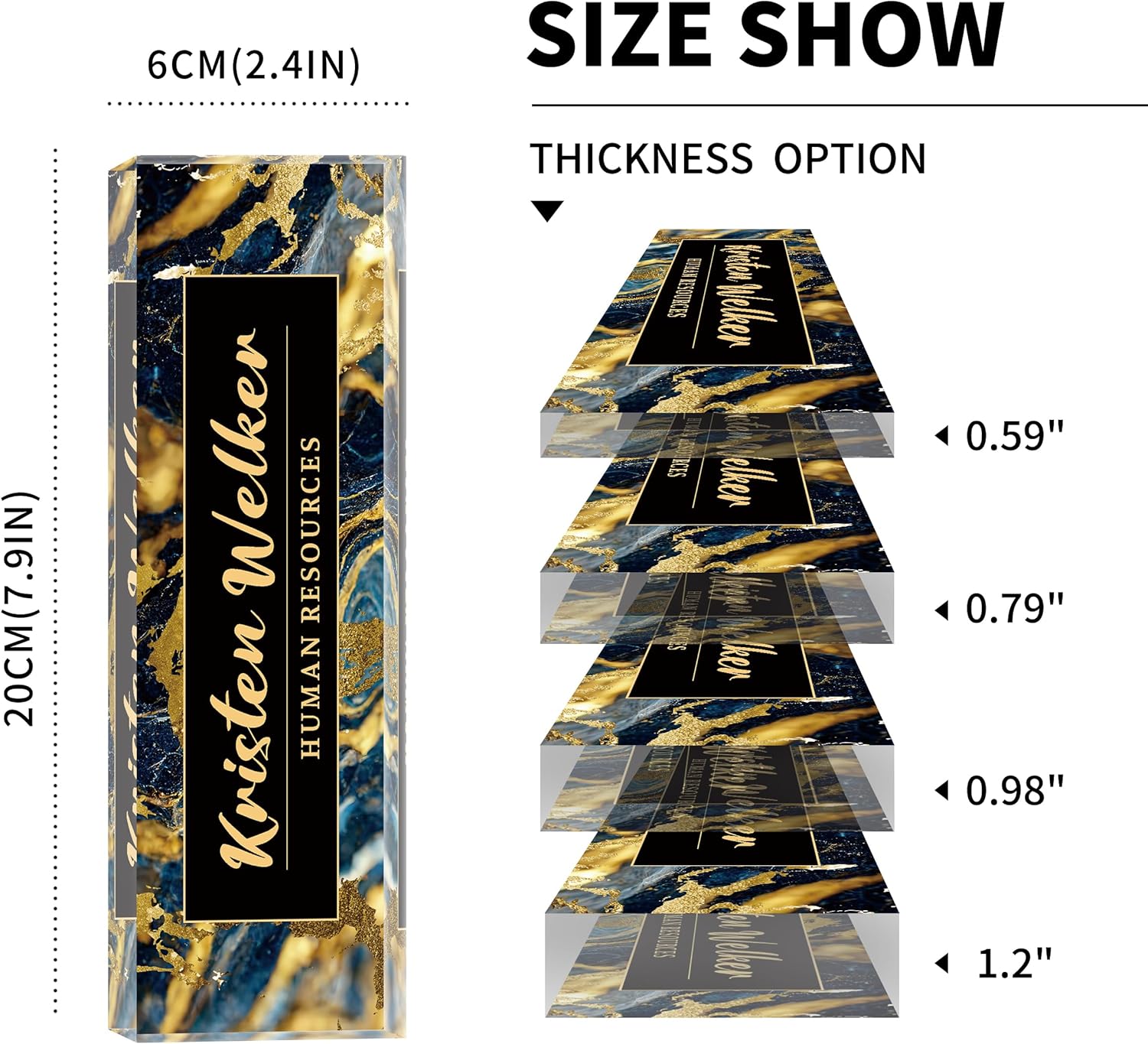 - 🎁Premium Quality: The personalized name sign plates are made of high quality crystal clear acrylic blocks. This office nameplate will stand out on any desk! We use high-tech uv printers to print on quality clear acrylics glass so you can visualise your memories.