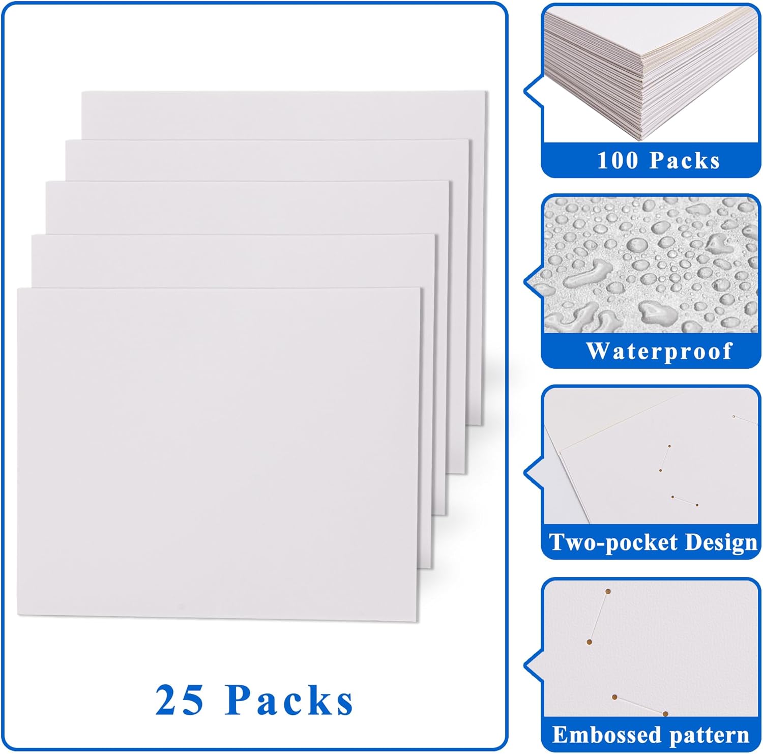 - Package Includes:25 packs white file folders with 2 pockets and business card slot,100 plus Sheet Capacity,enough use for you,perfect for school,paperwork,office,business.