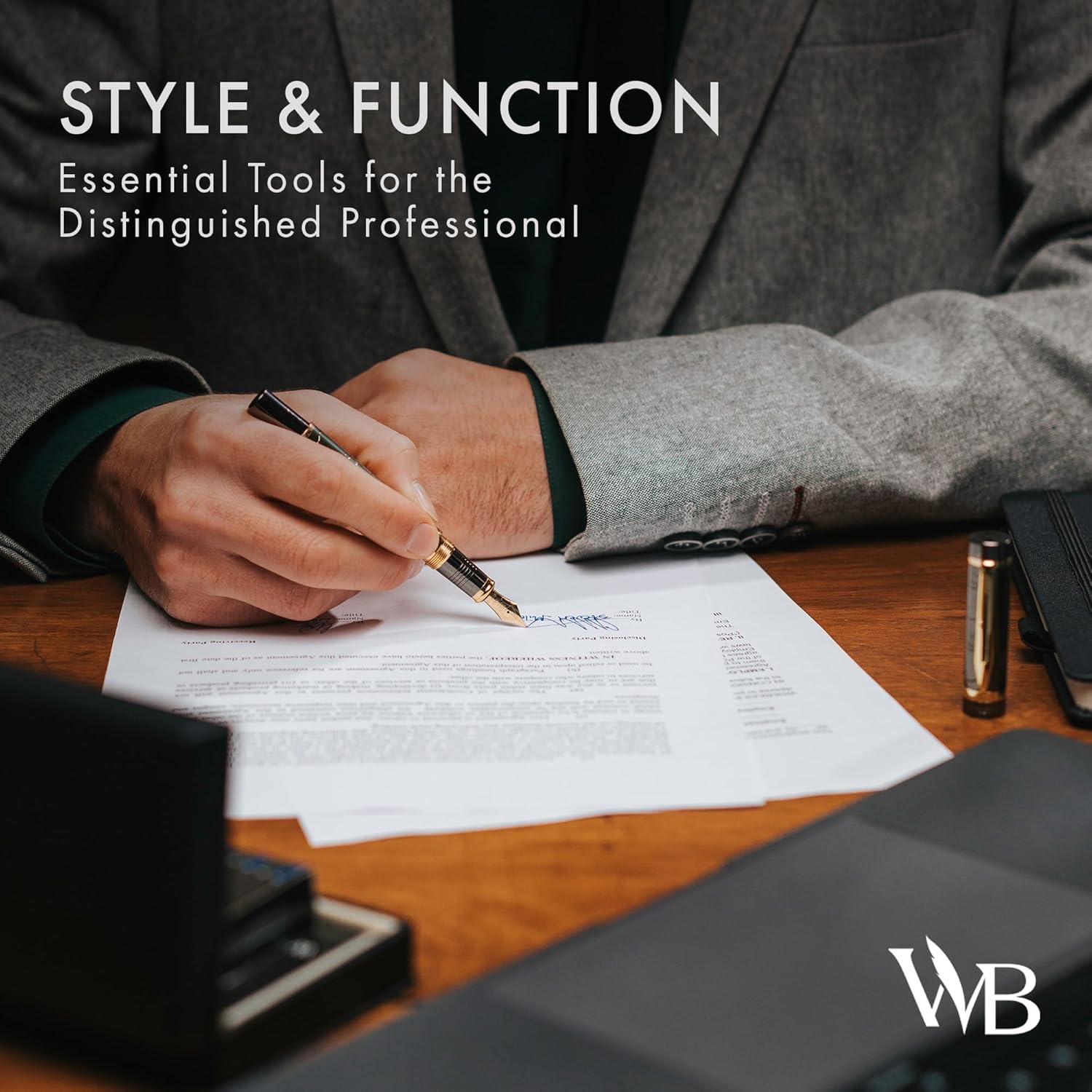 Wordsworth & Black Primori Fountain Pen Set [Gunmetal Gold]; Extra Fine Nib, Gift Case, 24 Ink Cartridges, Refill Converter, Manual; Journaling, Calligraphy, Smooth Writing Pens; Left and Right Handed
