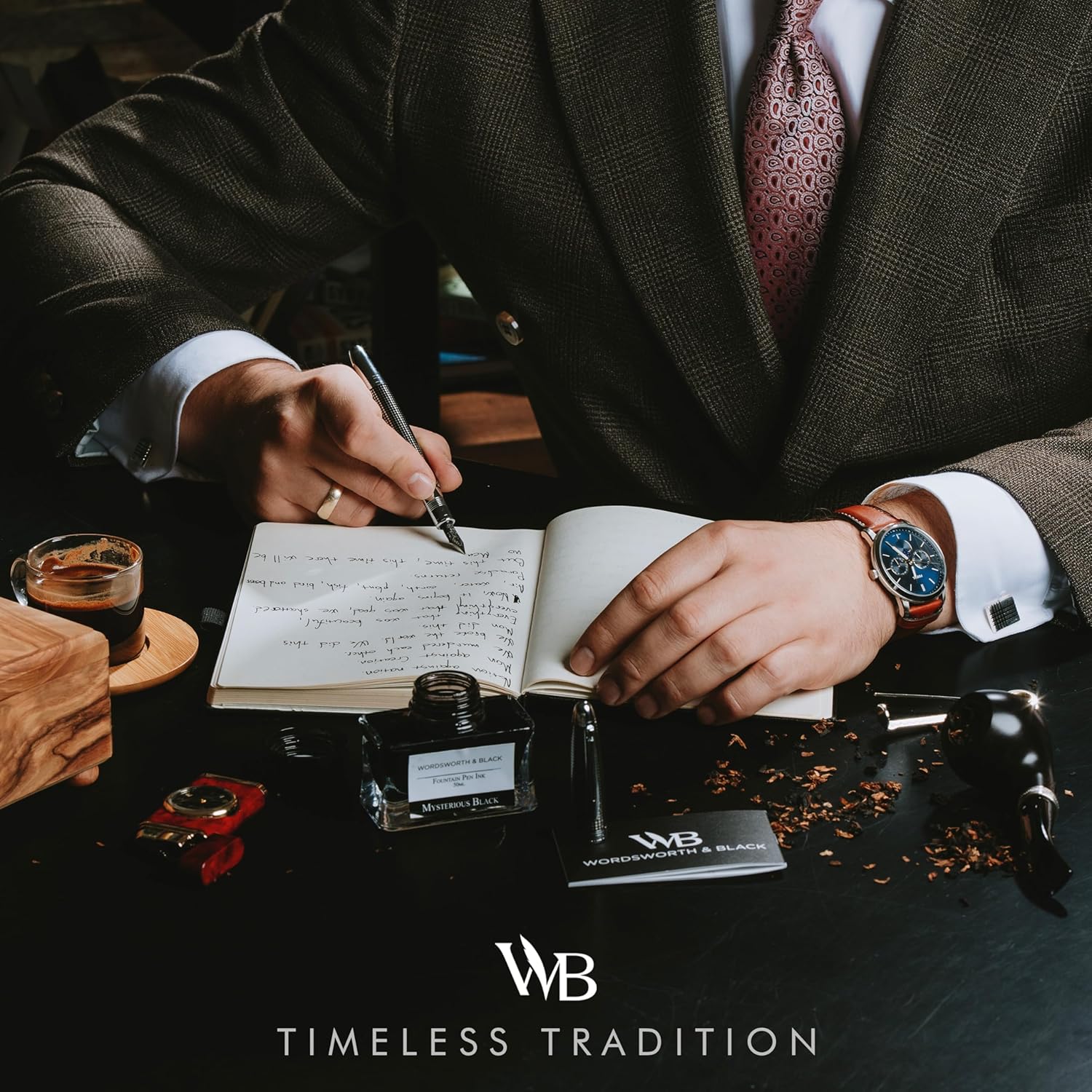 - ✒️Discover The All-inclusive Refillable Fountain Pen Set - Includes luxurious Majesti fountain pen, ink converter, 12 x blue ink cartridges, 12 x black ink cartridges, premium leather pen case, and a deluxe gift box - ready to be gifted. Included with every order is a complete instruction booklet for your Wordsworth and Black Pen Set. All the information you'll need to get started using and enjoying your luxurious writing tool will be right at your fingertips!