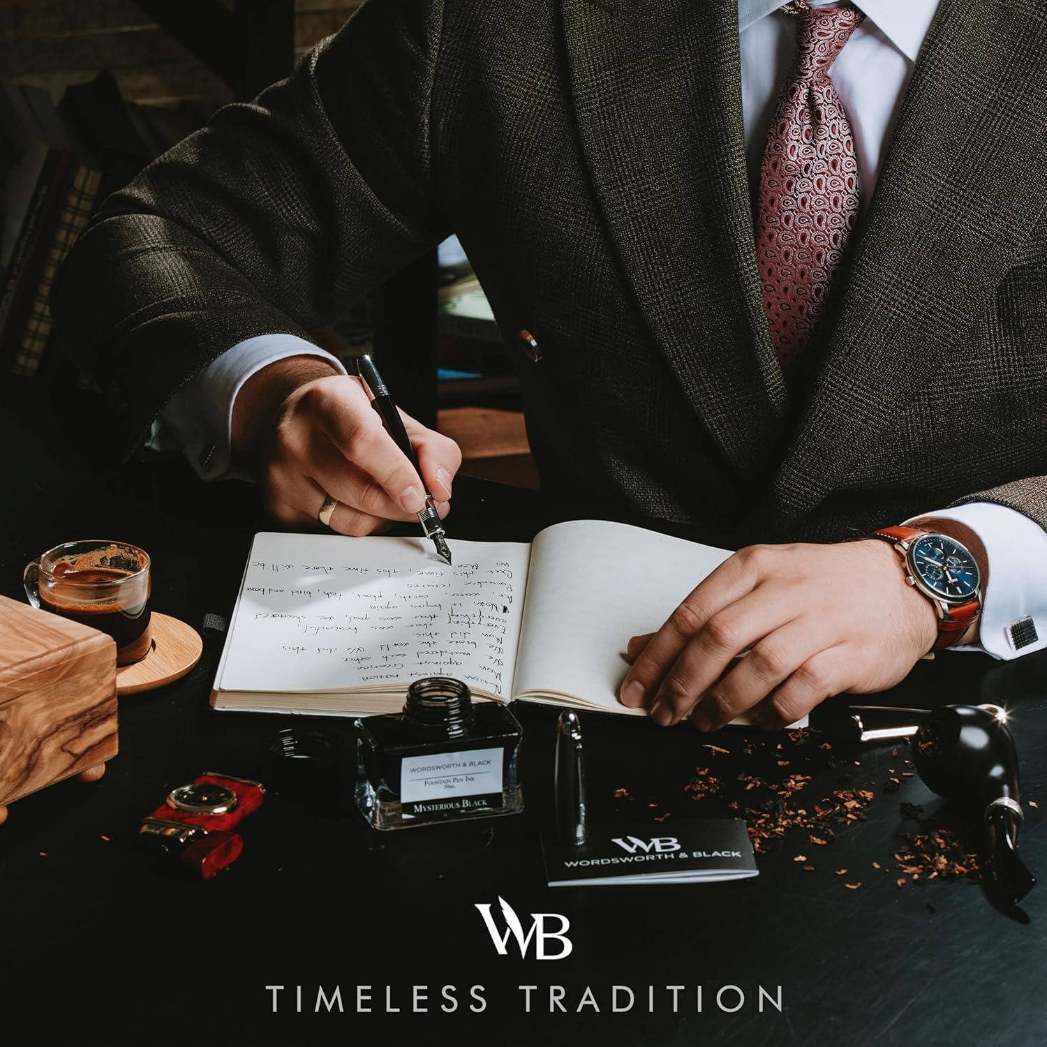 - ✒️Discover The All-inclusive Refillable Fountain Pen Set - Includes luxurious Majesti fountain pen, ink converter, 12 x blue ink cartridges, 12 x black ink cartridges, premium leather pen case, and a deluxe gift box - ready to be gifted. Included with every order is a complete instruction booklet for your Wordsworth and Black Pen Set. All the information you'll need to get started using and enjoying your luxurious writing tool will be right at your fingertips!